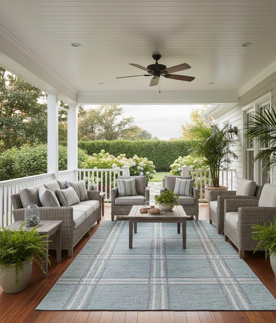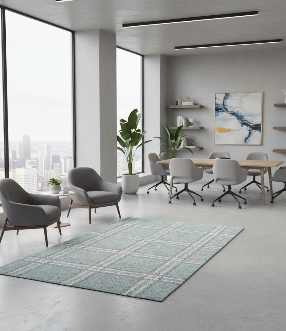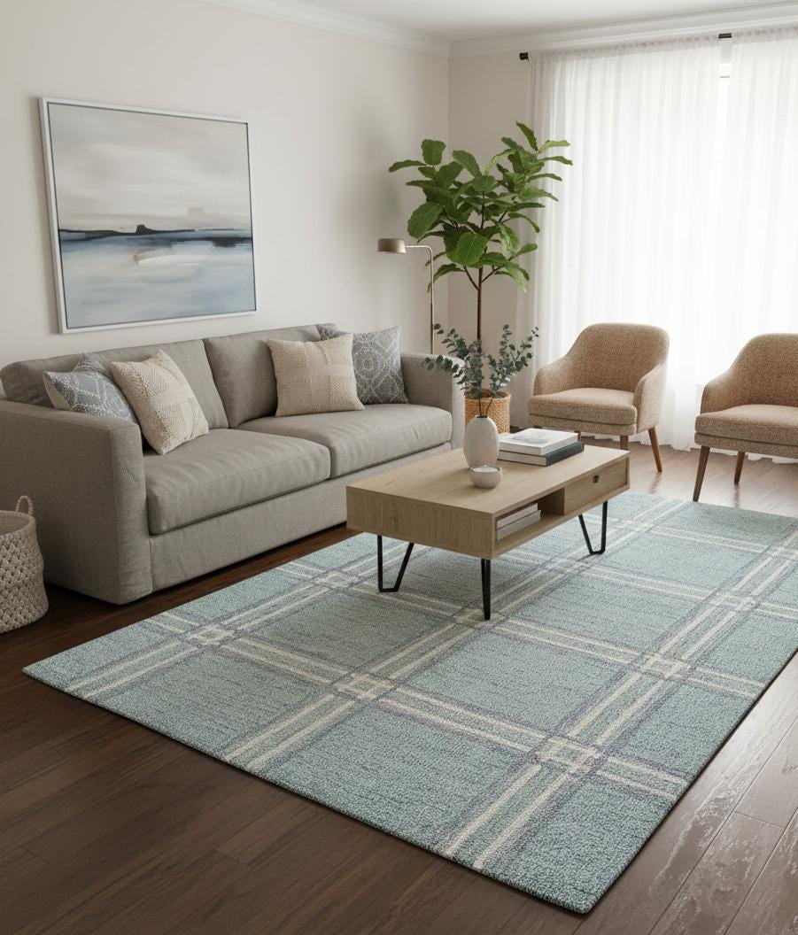 This light blue plaid rug adds warmth, balance, and handcrafted charm—perfect for creating a cozy yet modern home atmosphere.