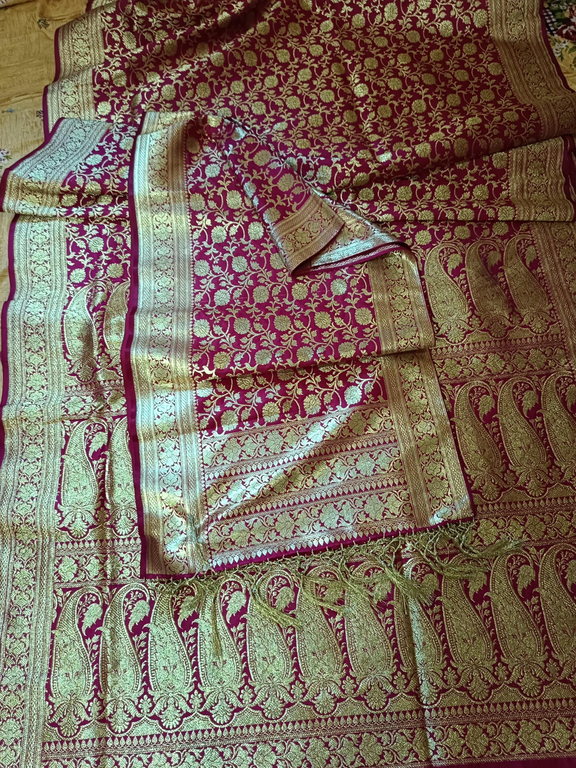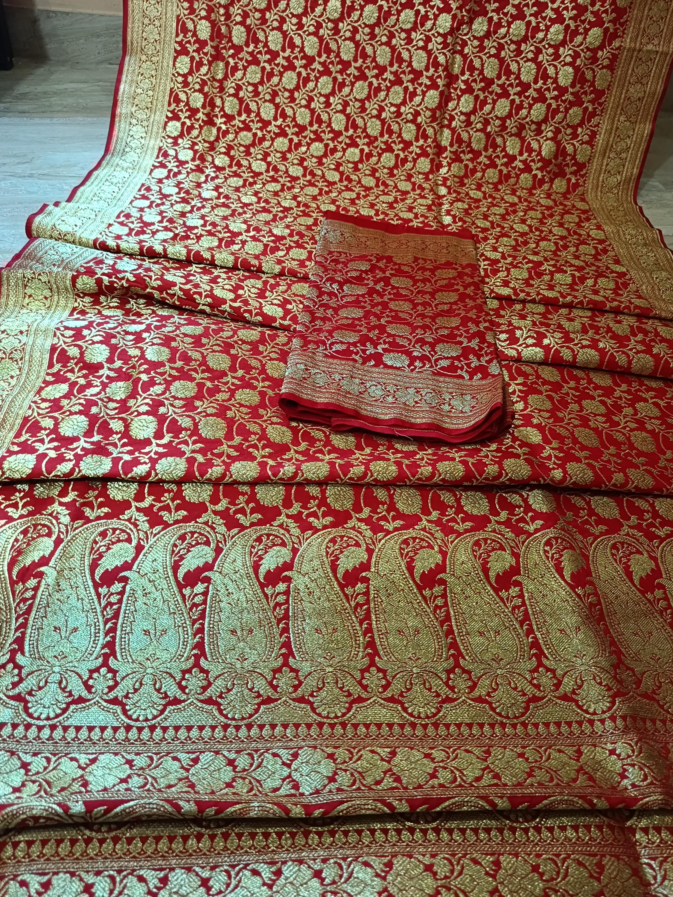 Traditional banarsi satan sarees red colour cotton silk sarees with scarf free