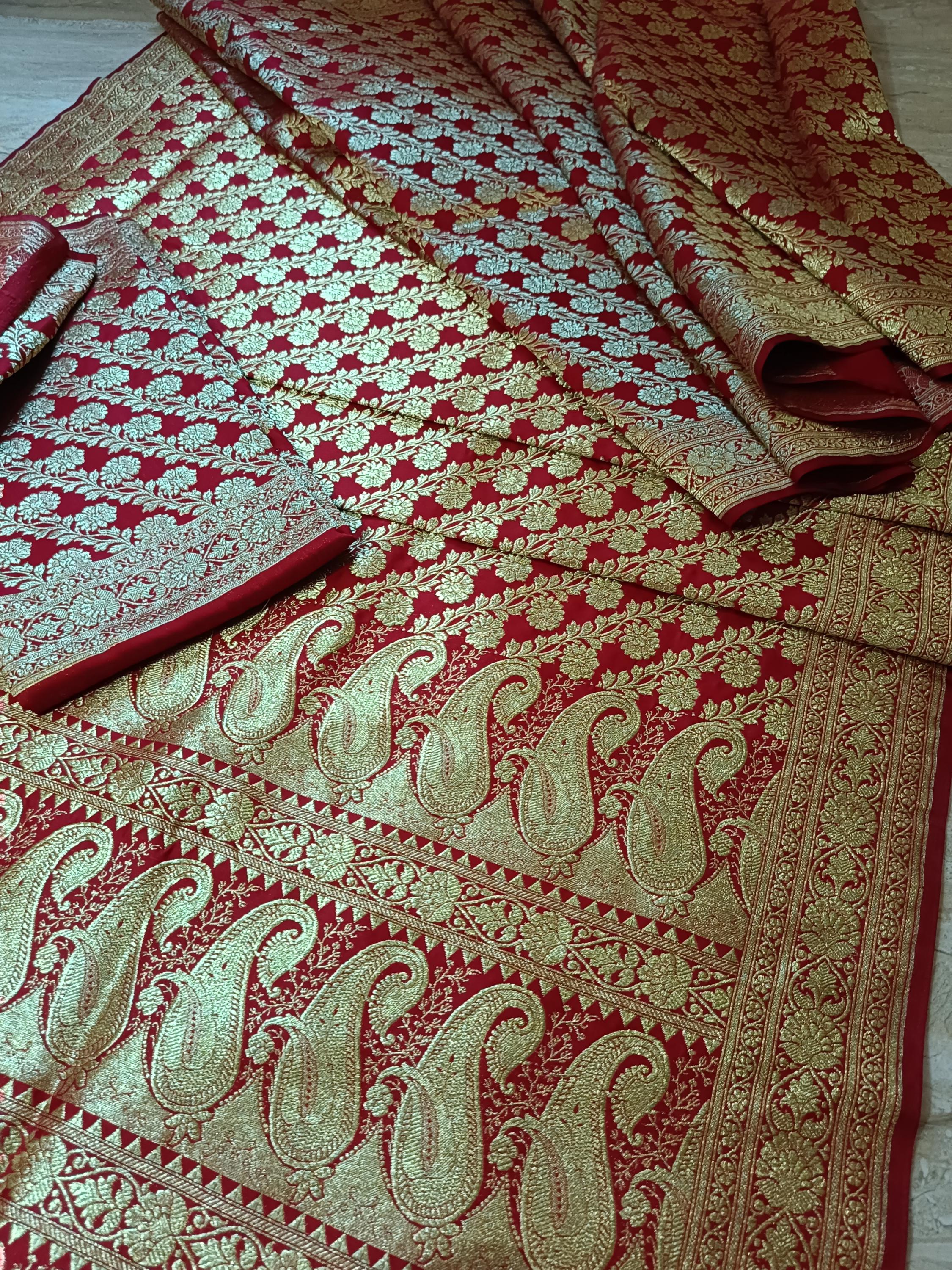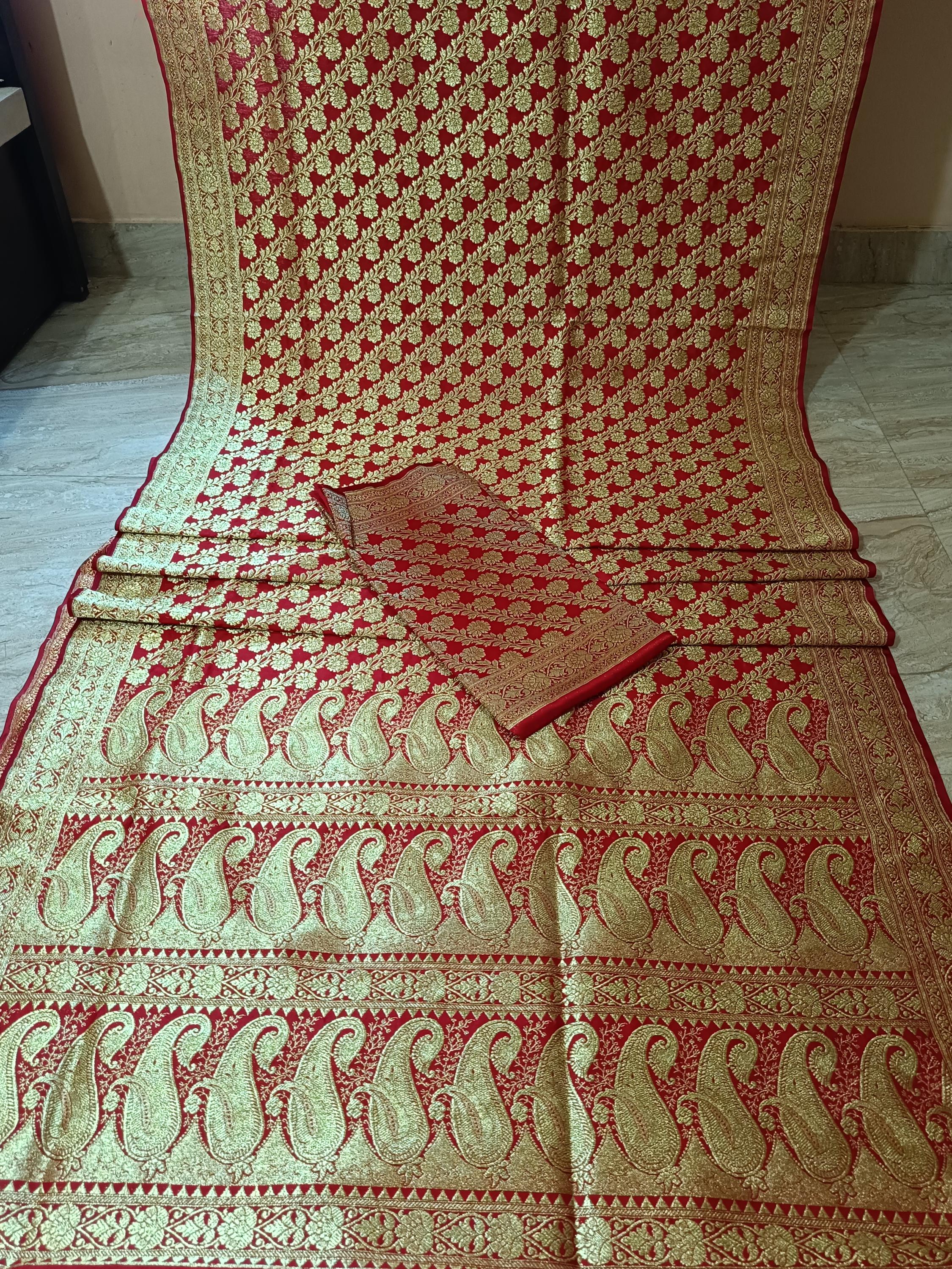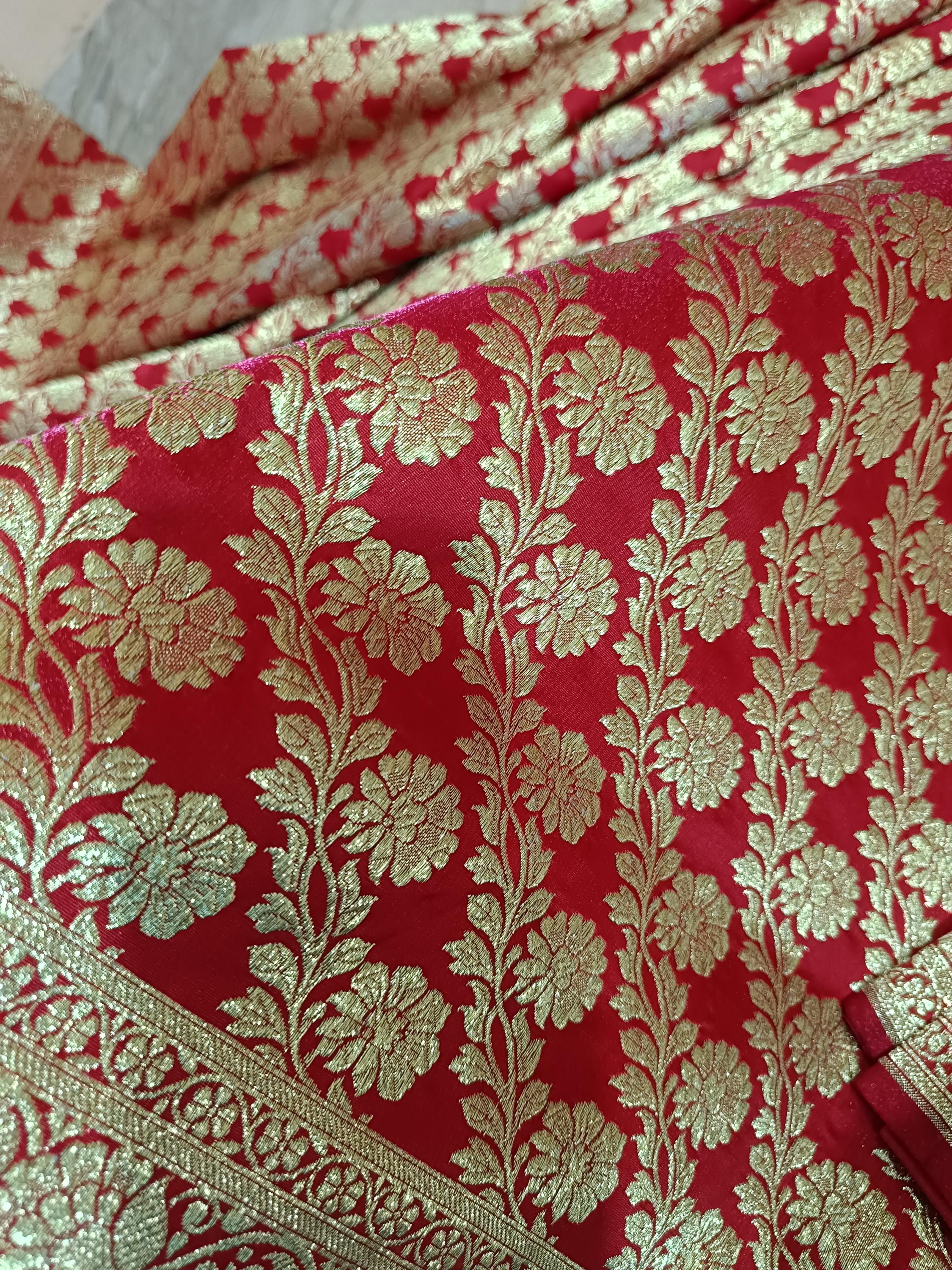 Bright red traditional banarsi sarees cotton silk sarees with scarf free