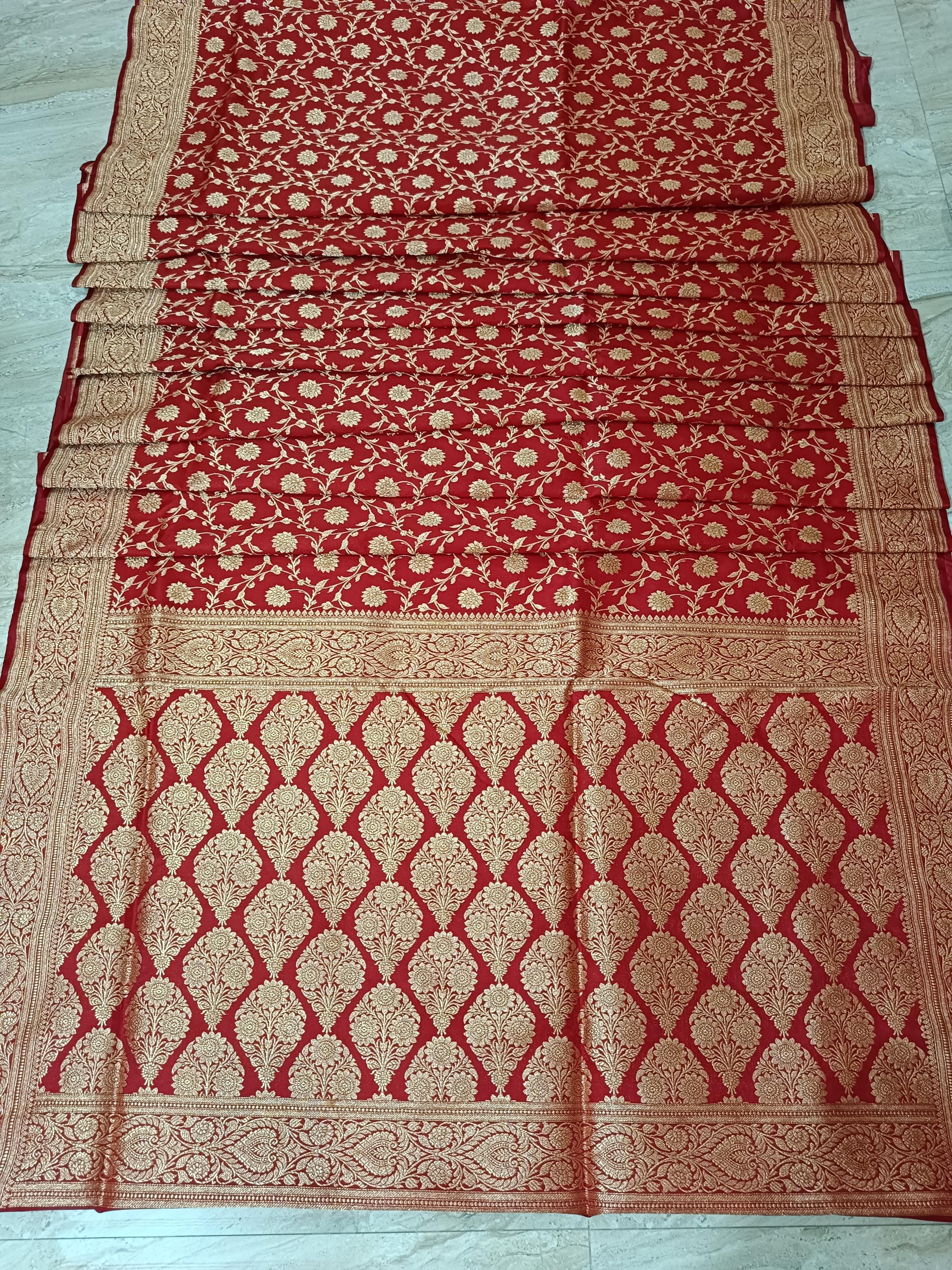 Red traditional banarsi silk saree with golden zaru weave