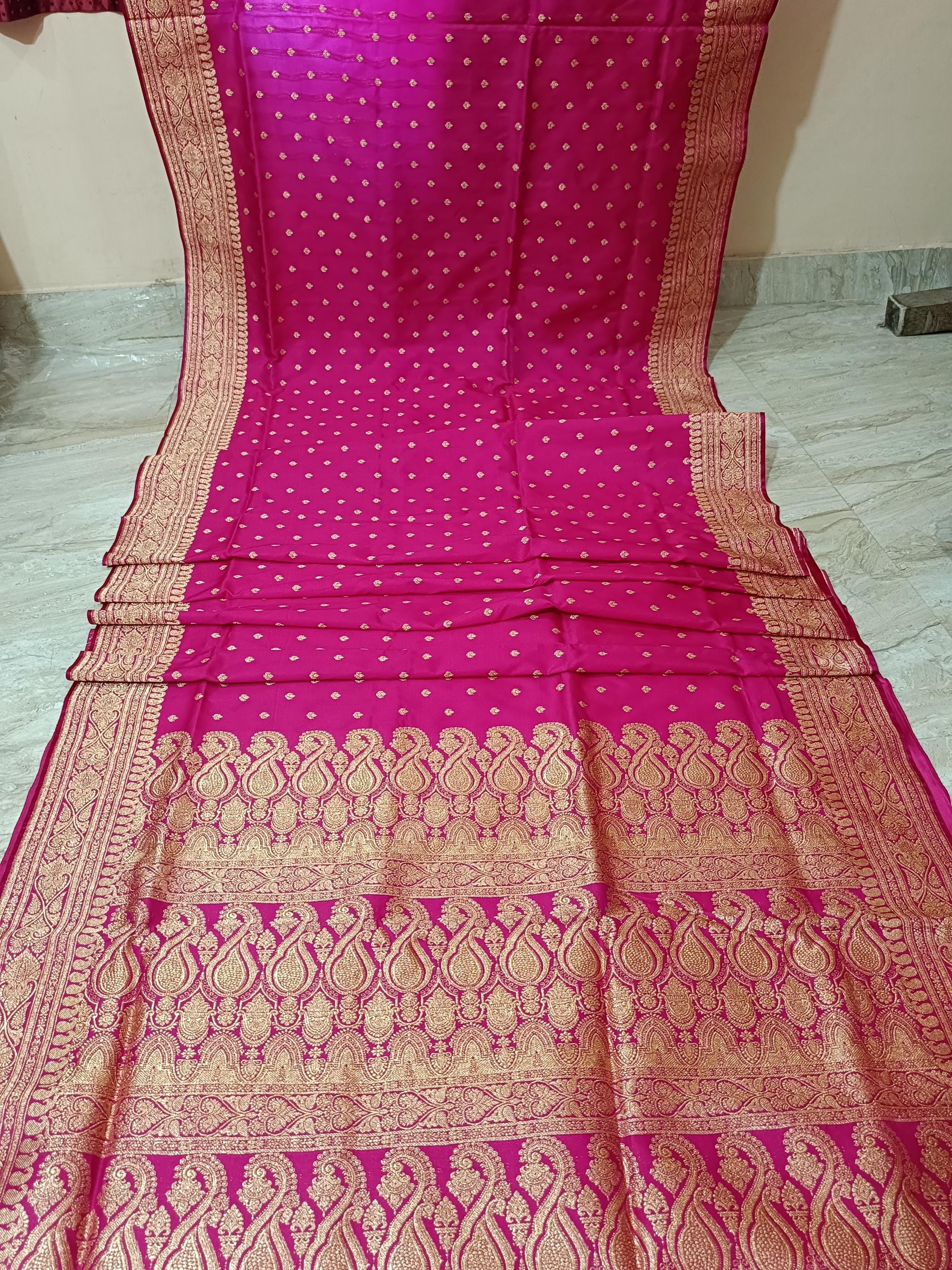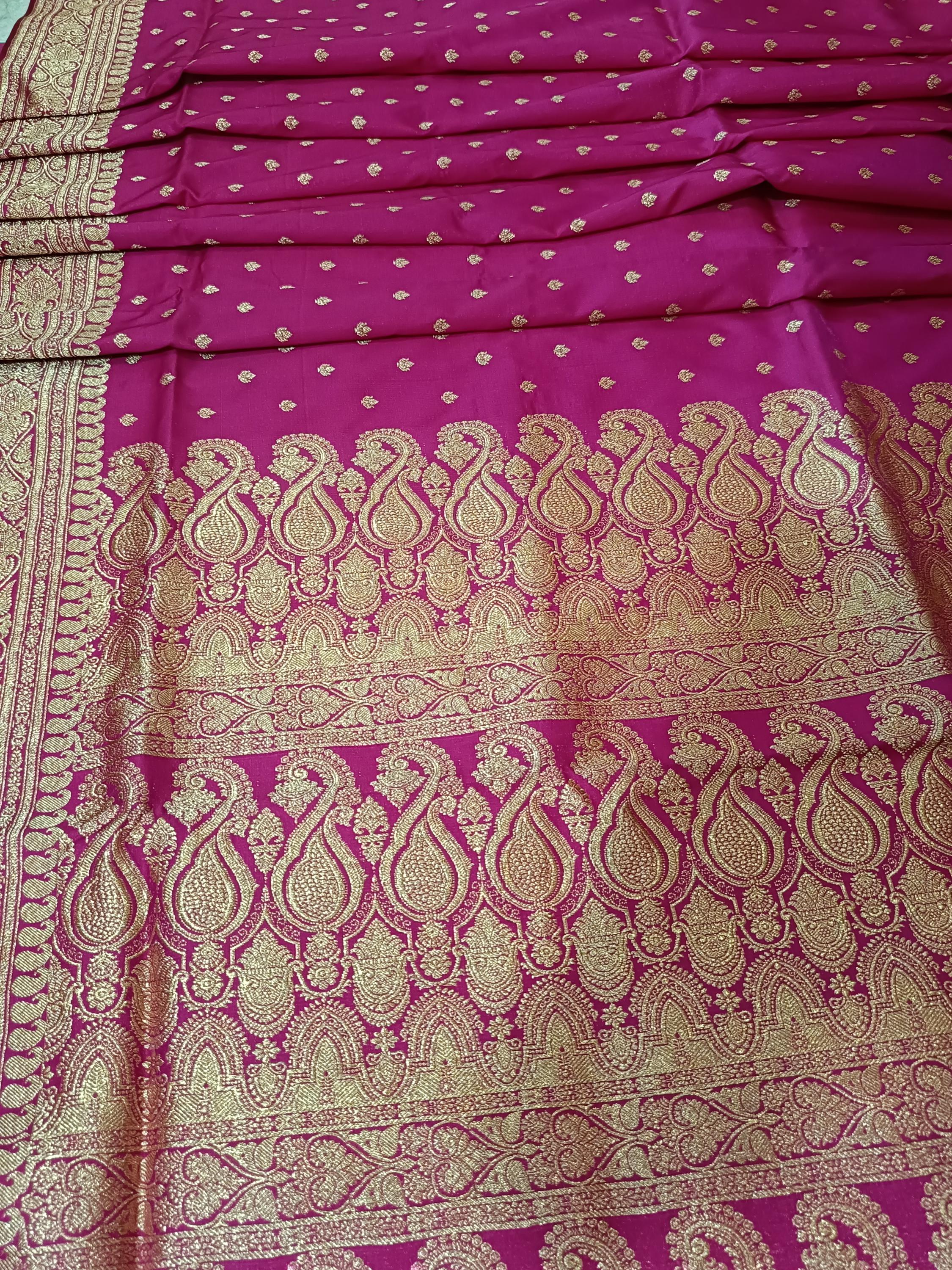 Pink traditional banarsi silk saree with gold zari weave