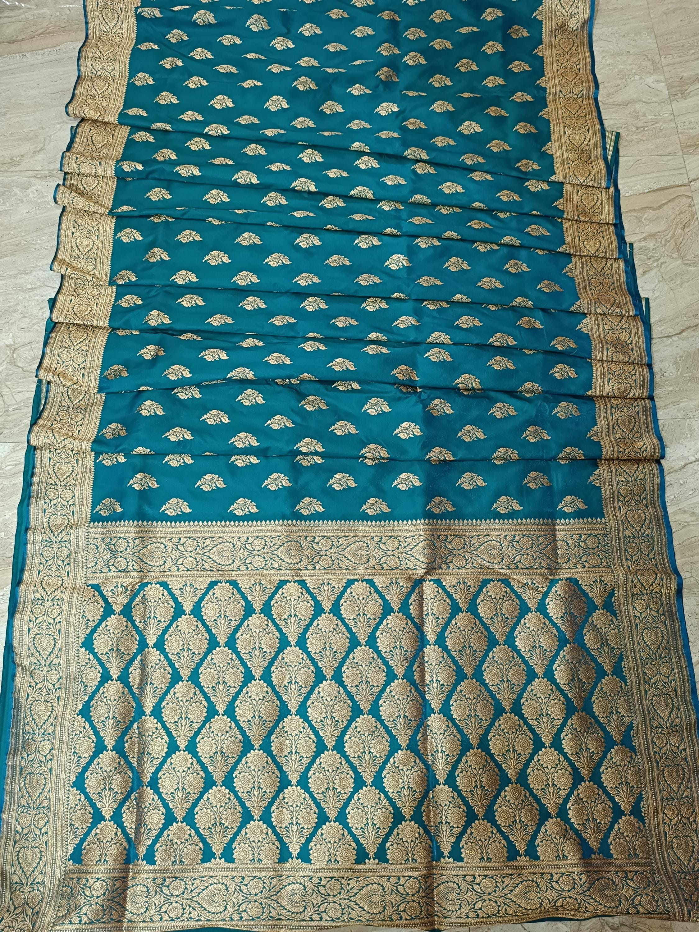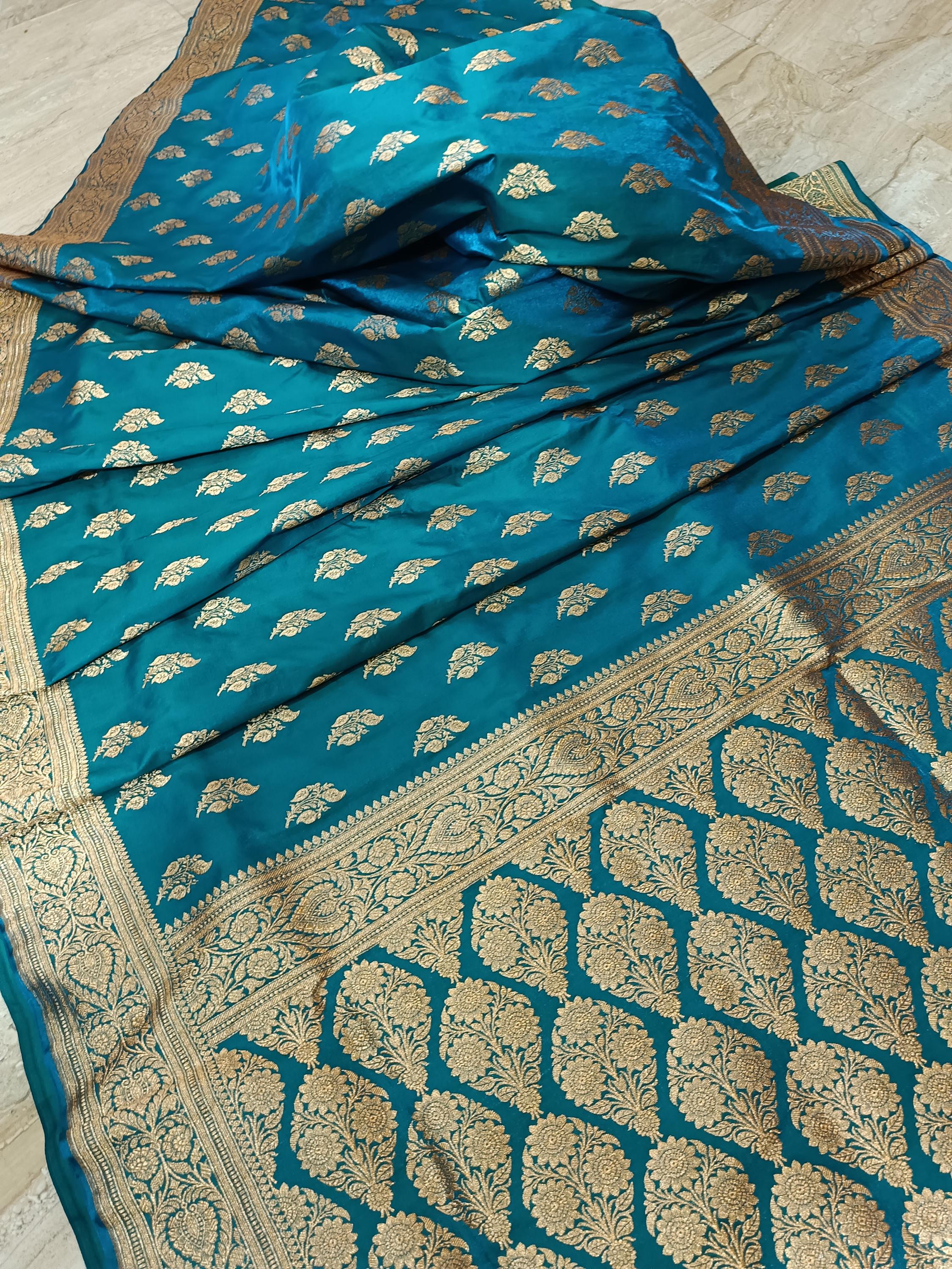 Sky blue traditional banarsi silk saree with gold zari