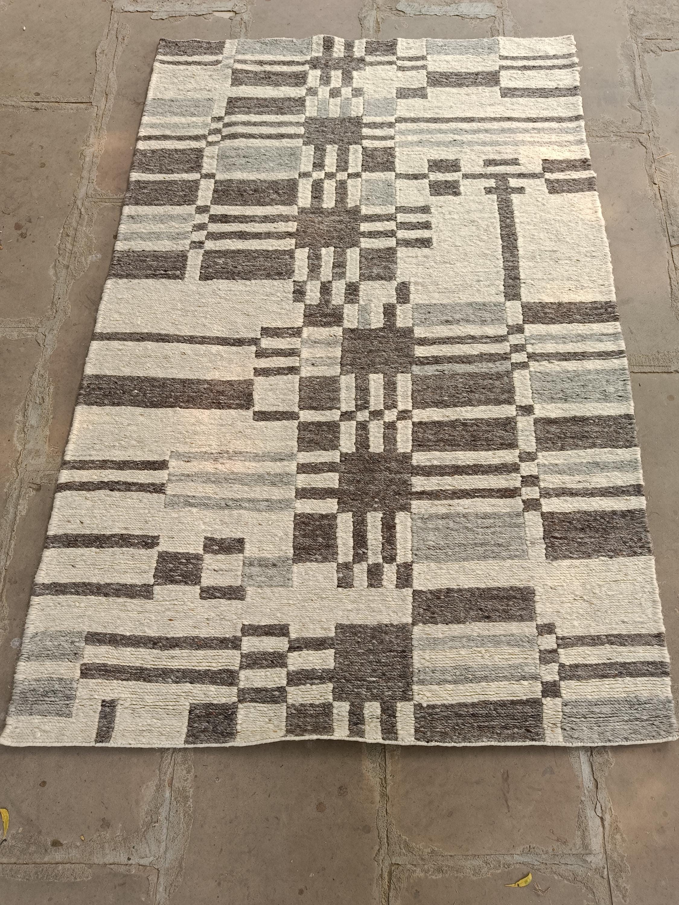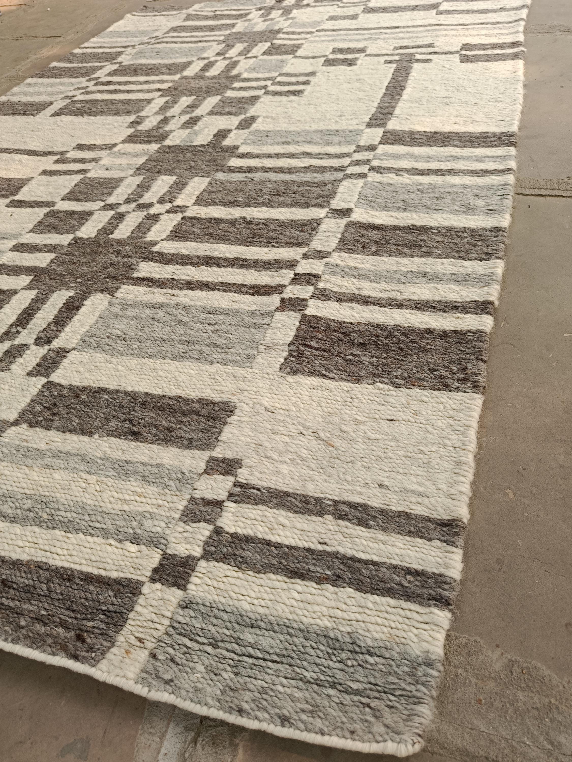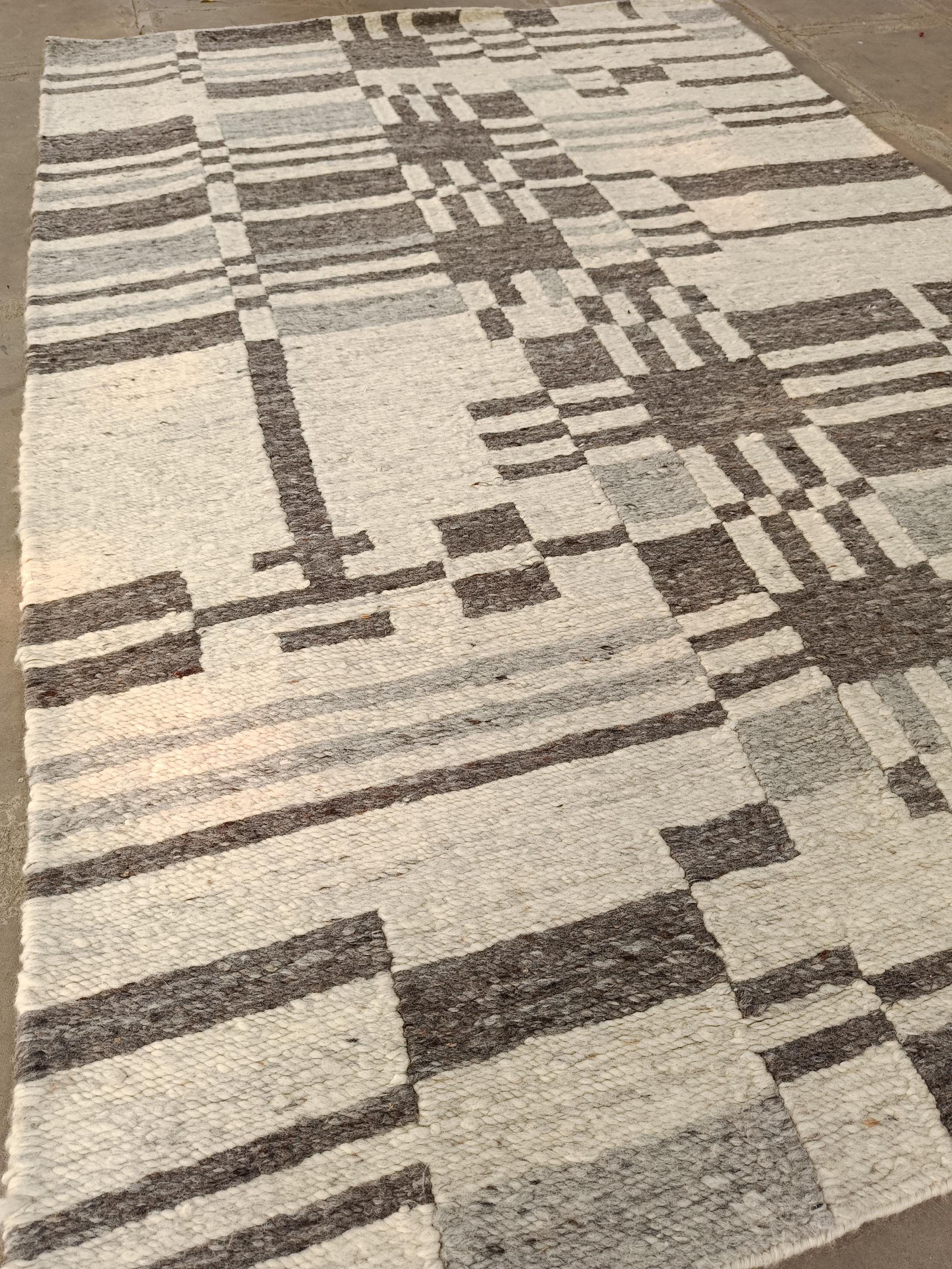 Handwoven Wool Rug, Modern Abstract Geometric Area Rug, Neutral Plaid Flatweave Carpet, Scandinavian Boho Home Decor