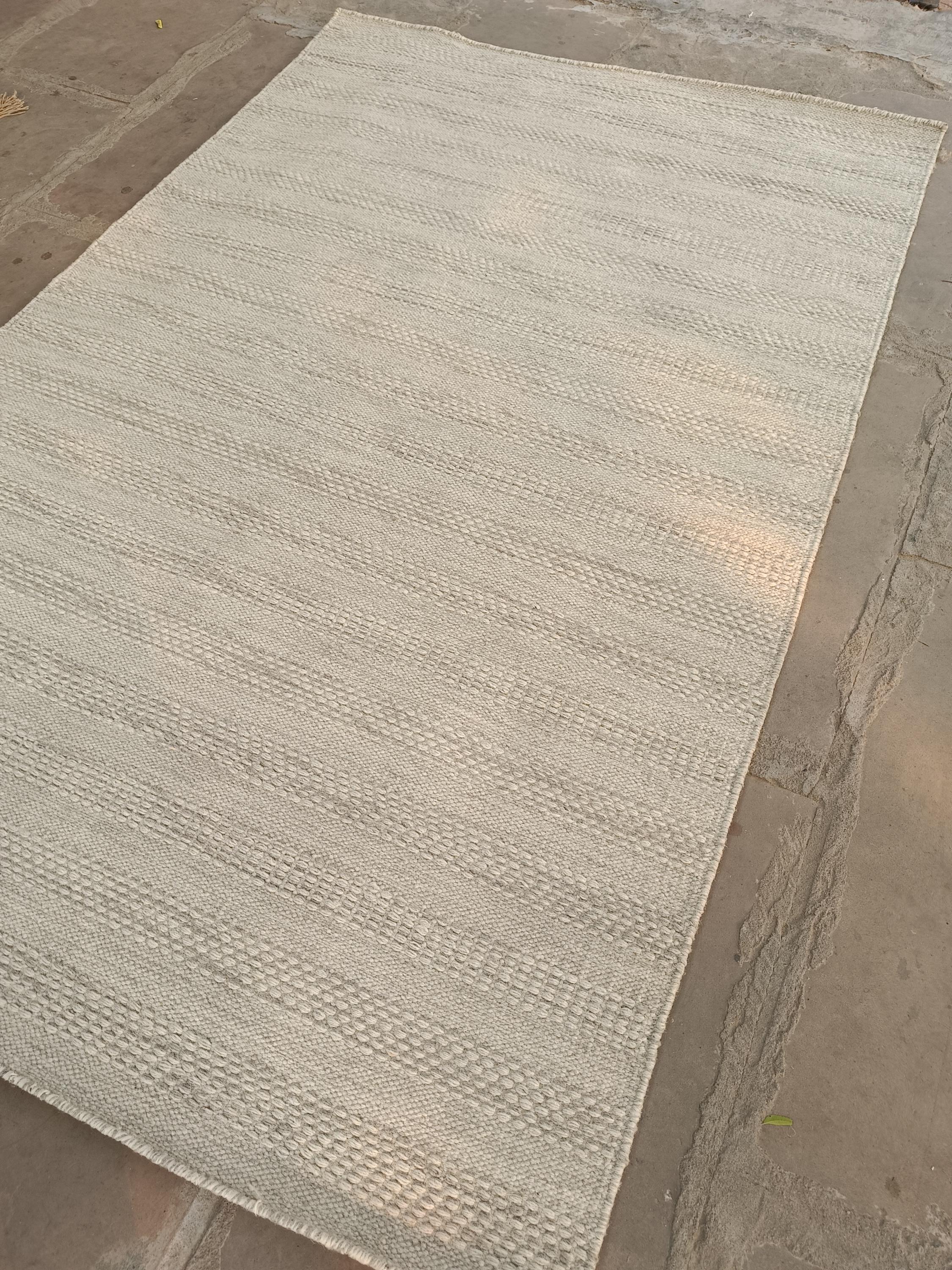 Create a calm, elegant space with this handwoven ivory flatweave rug, featuring a subtle textured weave and clean neutral tone—perfect for modern, Scandinavian, and minimalist interiors.