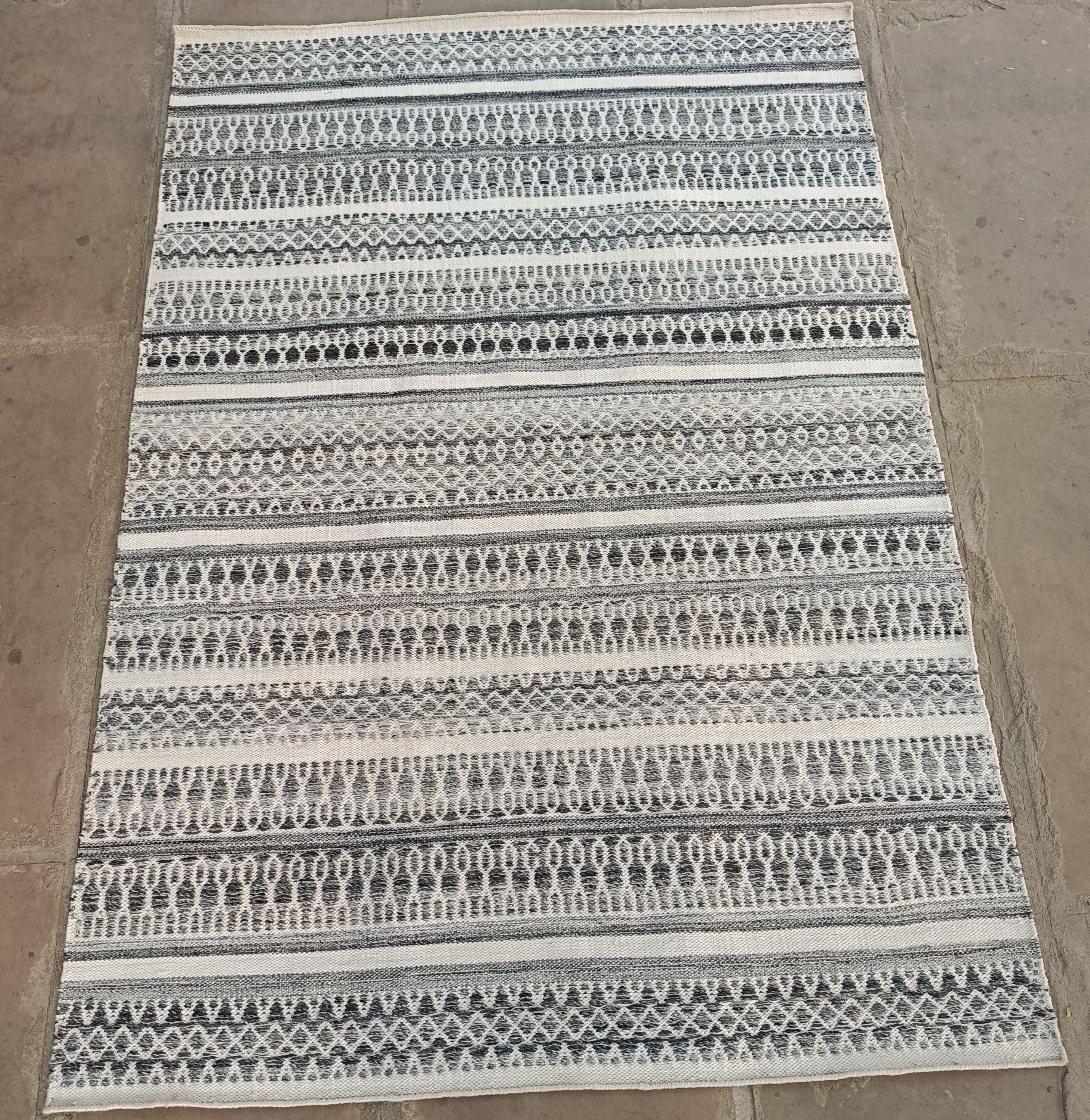 Handwoven Black and White Flatweave Rug | Geometric Striped pet Rug | Boho Scandinavian Area Rug for Living Room Bedroom