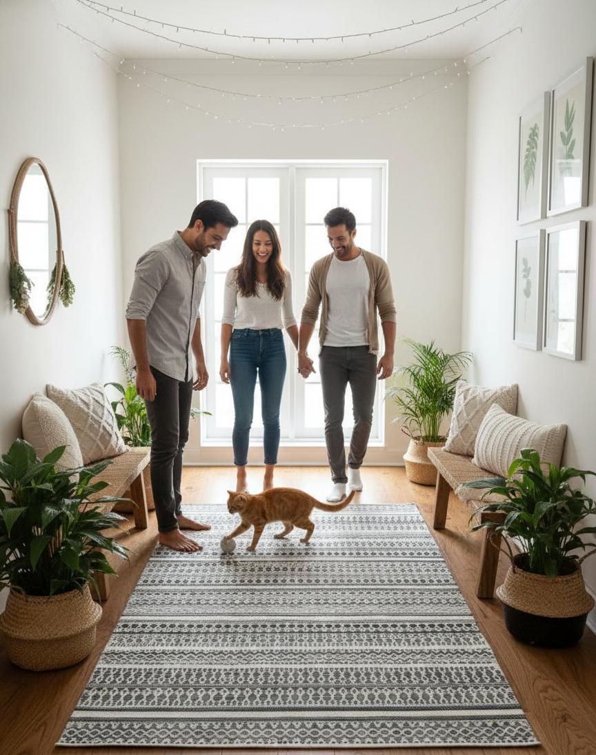 The lightweight flatweave construction makes it easy to place, move, and maintain—ideal for high-traffic areas like living rooms, bedrooms, hallways, and home offices.