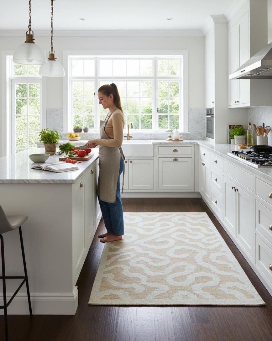 Woven by hand using traditional techniques, this rug offers a low-profile texture that’s comfortable underfoot and easy to style in everyday spaces. Its contemporary design pairs beautifully with minimalist, Scandinavian, Japandi, and modern boho interiors.