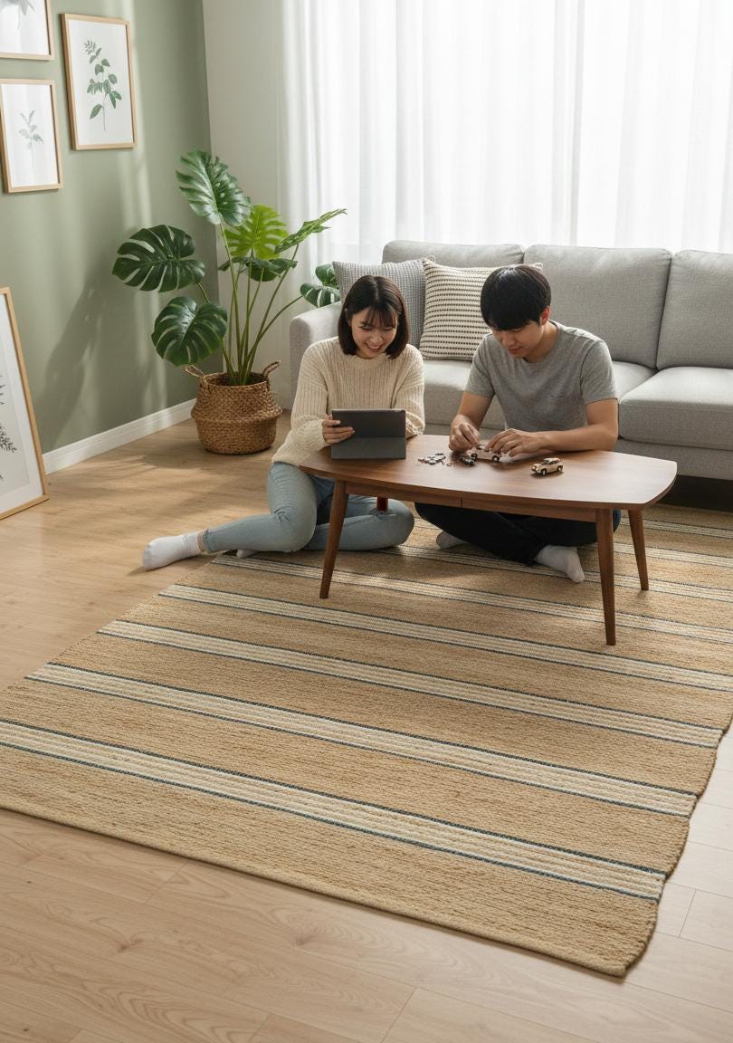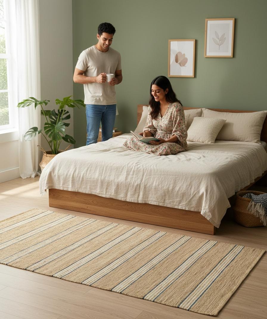 Each rug is unique, with gentle variations in weave and tone that reflect authentic craftsmanship and natural materials.