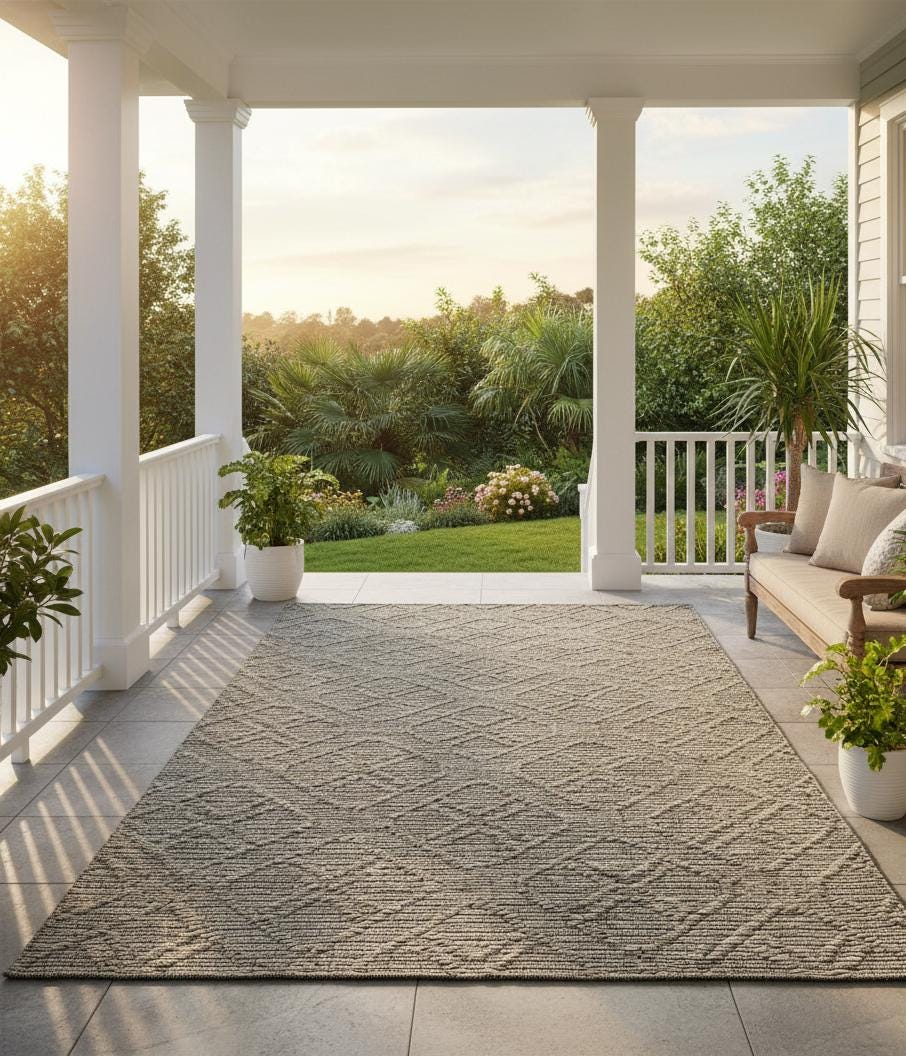 This handwoven Moroccan-style wool rug features a timeless diamond pattern created through raised texture rather than bold color, giving it depth, warmth, and a beautifully understated presence. The neutral blend of beige and soft gray makes it easy to style while still adding visual interest.