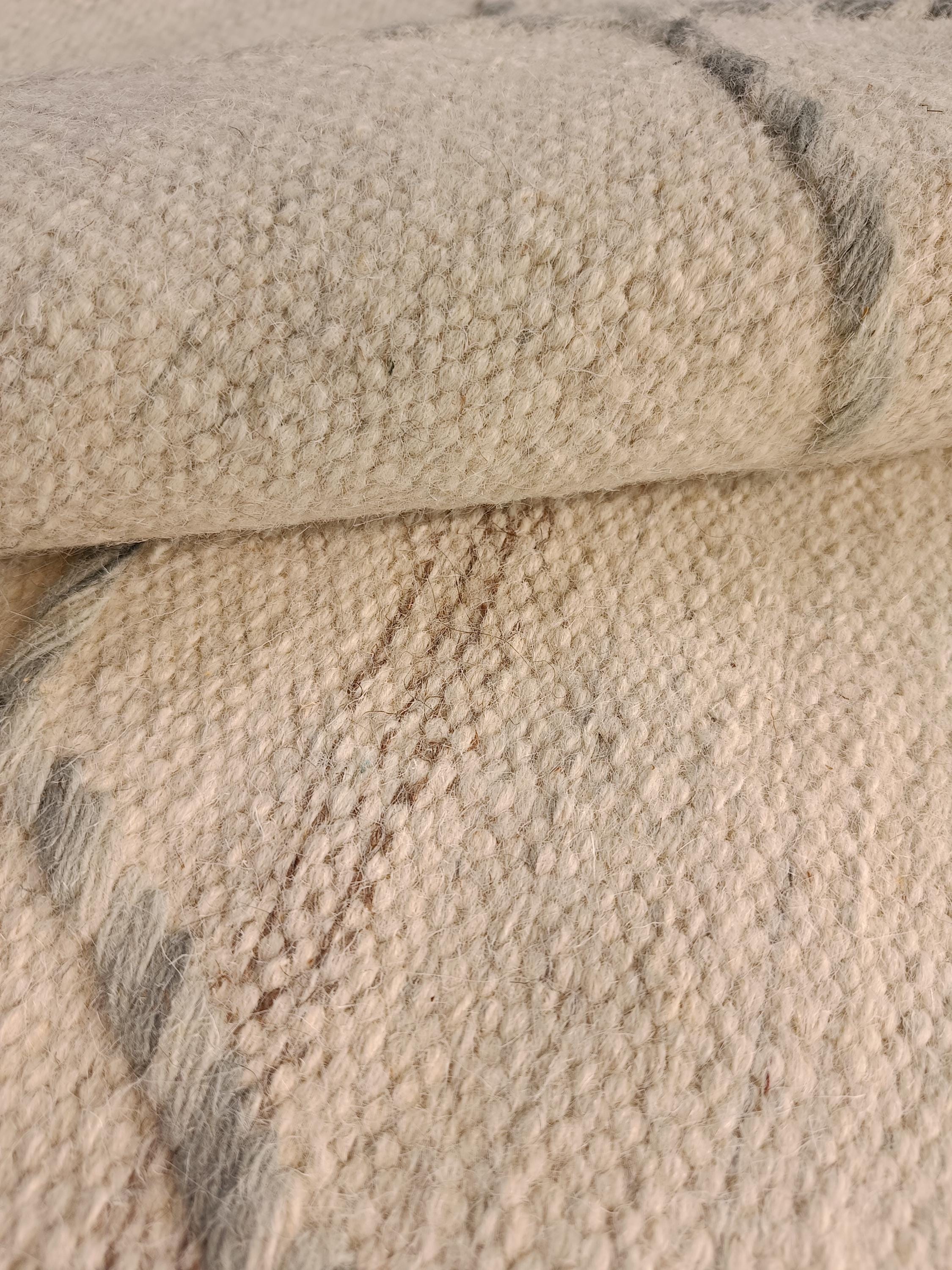 Handwoven Moroccan Kilim Rug – Minimalist Geometric Flatweave, Neutral Cream Wool Area Rug, Modern Berber Style