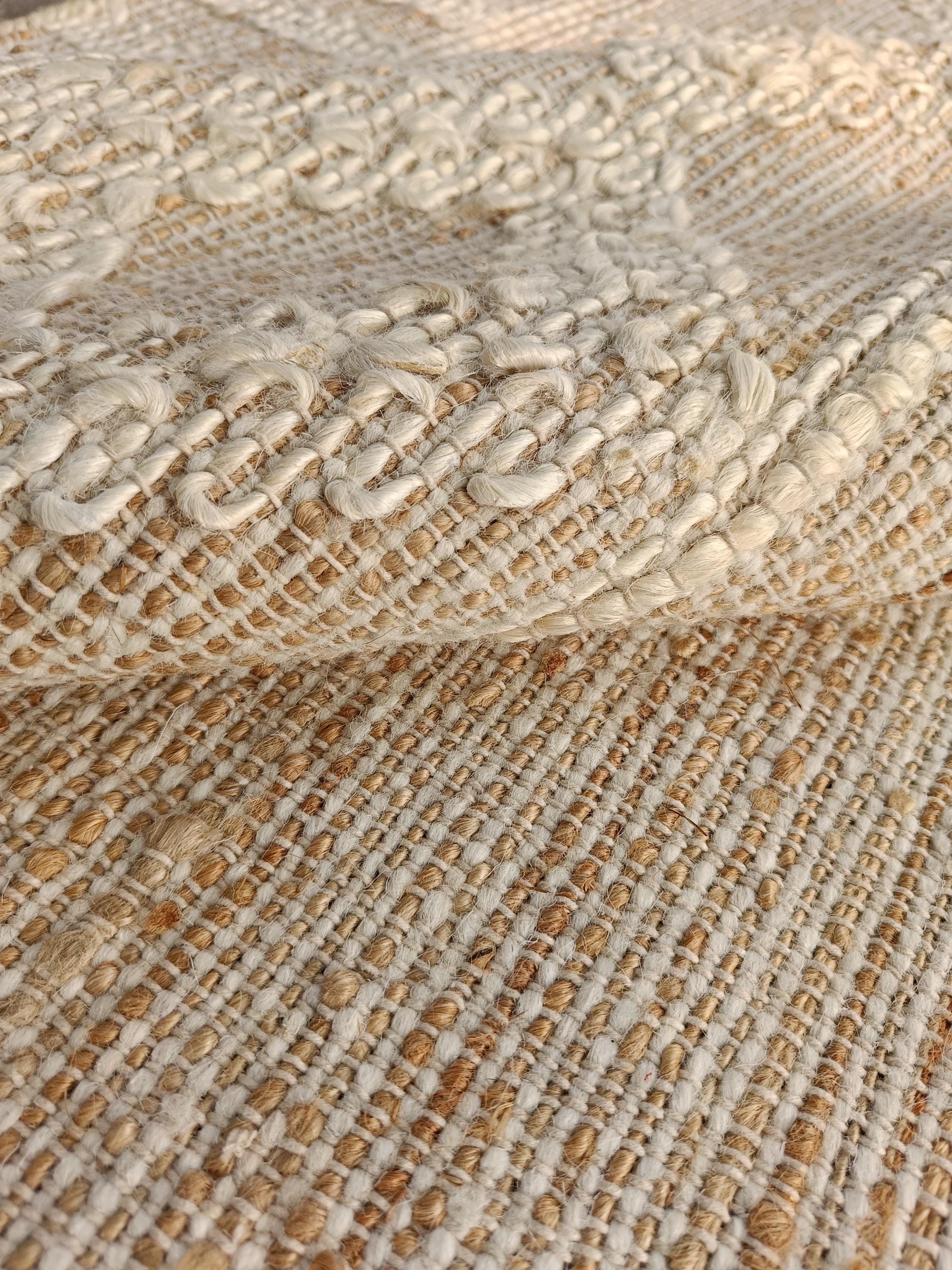 Create a calm, grounded look in your home with this handwoven natural jute rug, featuring a subtle bordered geometric design in soft beige and ivory. The textured flatweave construction adds warmth and character while maintaining a clean, minimalist aesthetic.