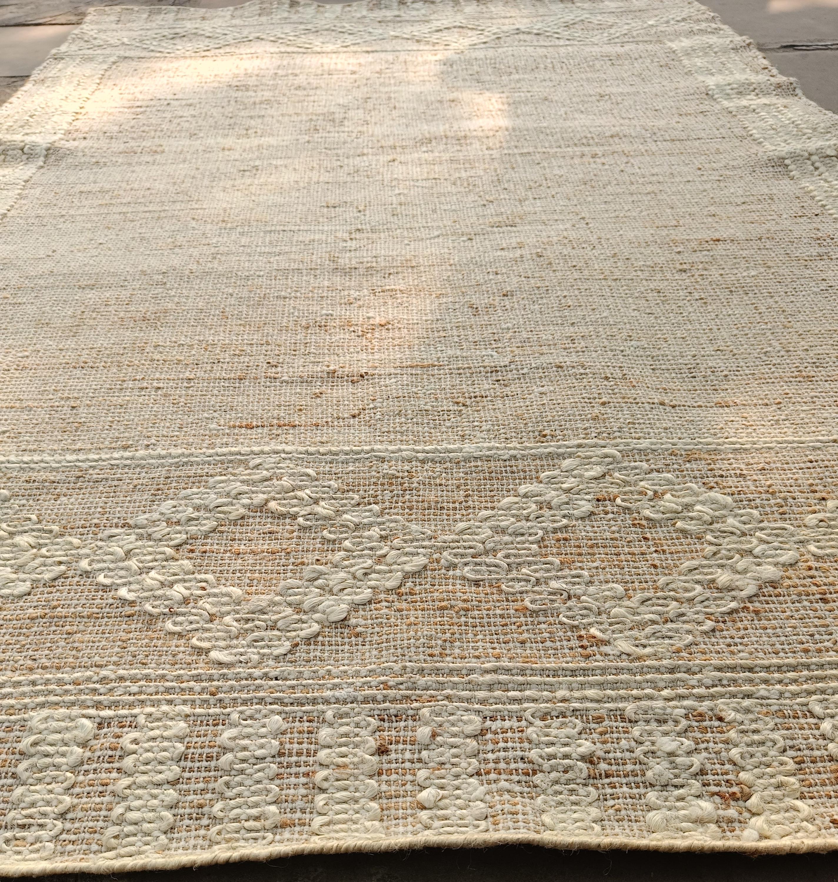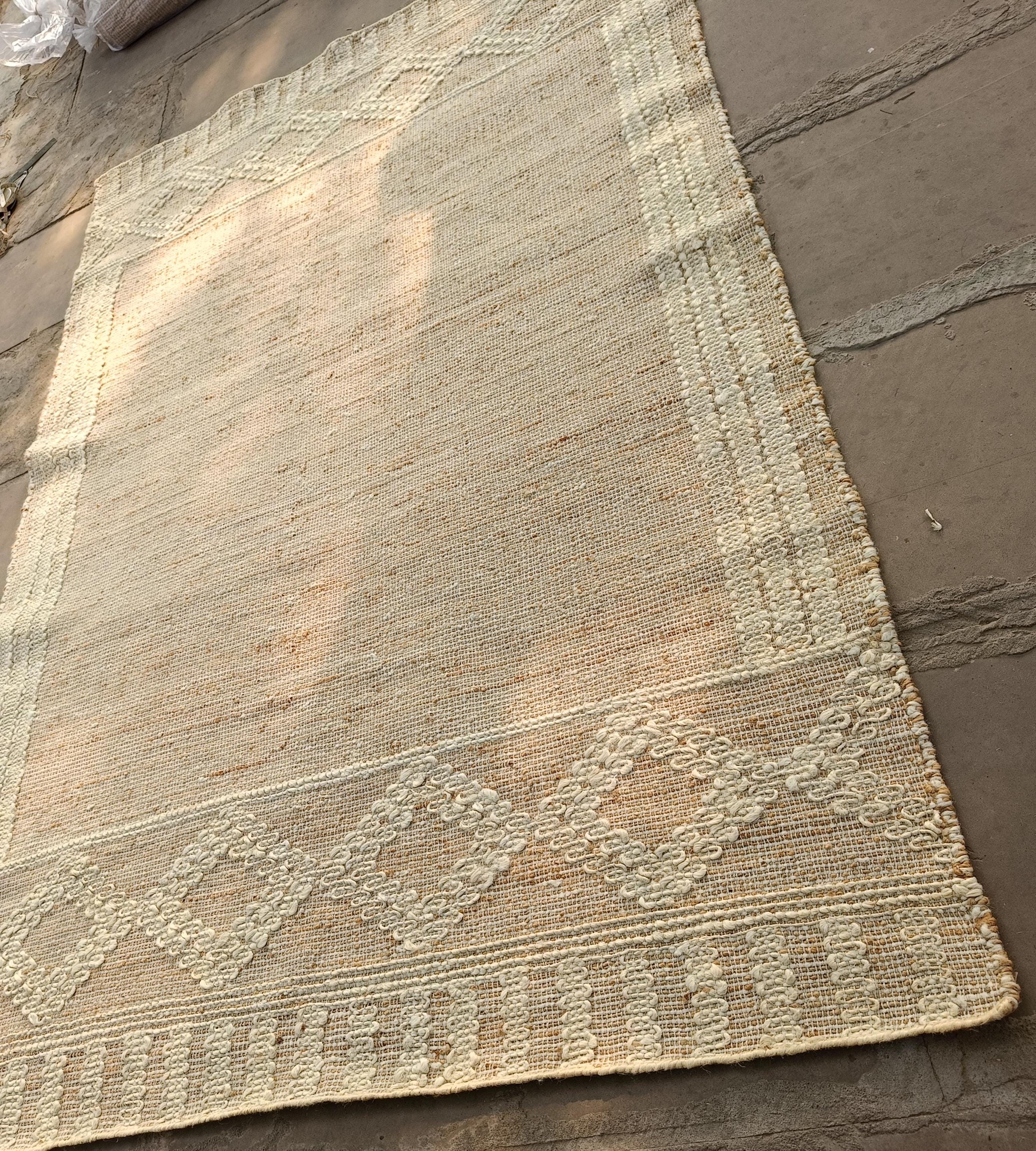 Handwoven Natural Jute Rug | Beige & Ivory Border Design Flatweave Rug | Minimalist Boho Eco Friendly Area Rug