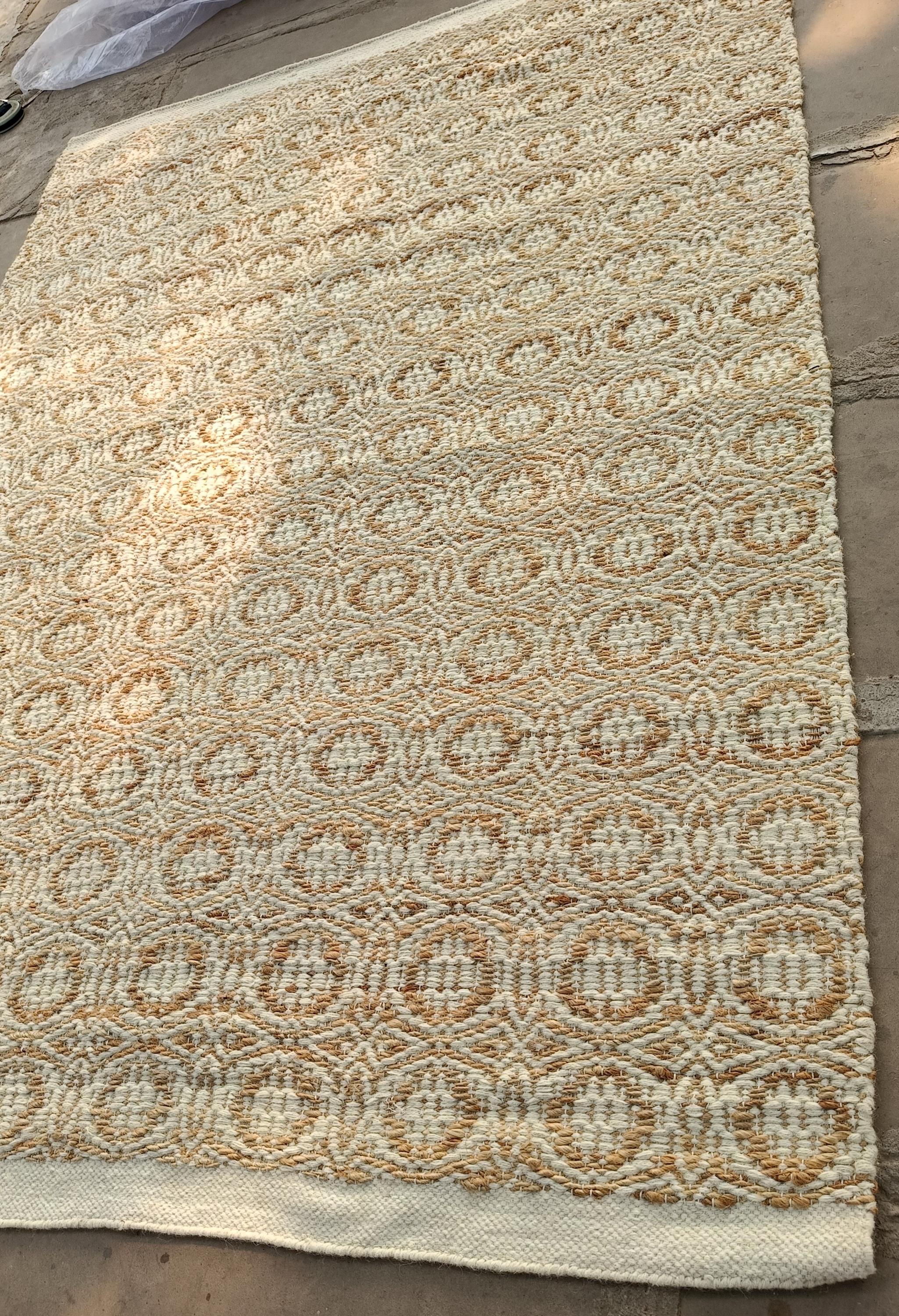 Handwoven Natural Jute Rug | gold & Ivory Textured Flatweave Rug | Minimalist Boho Eco Friendly Area Rug