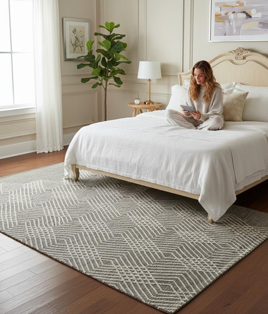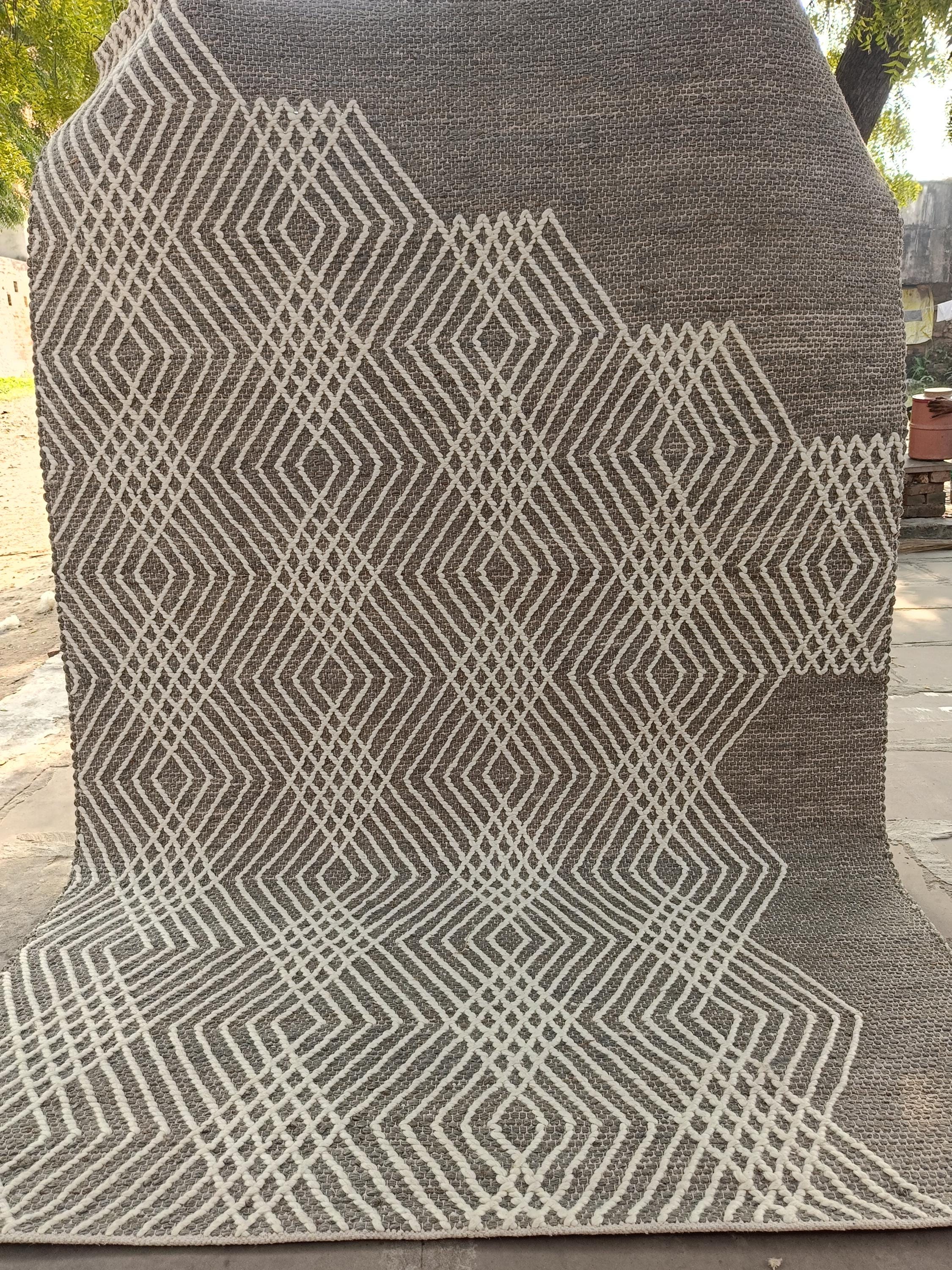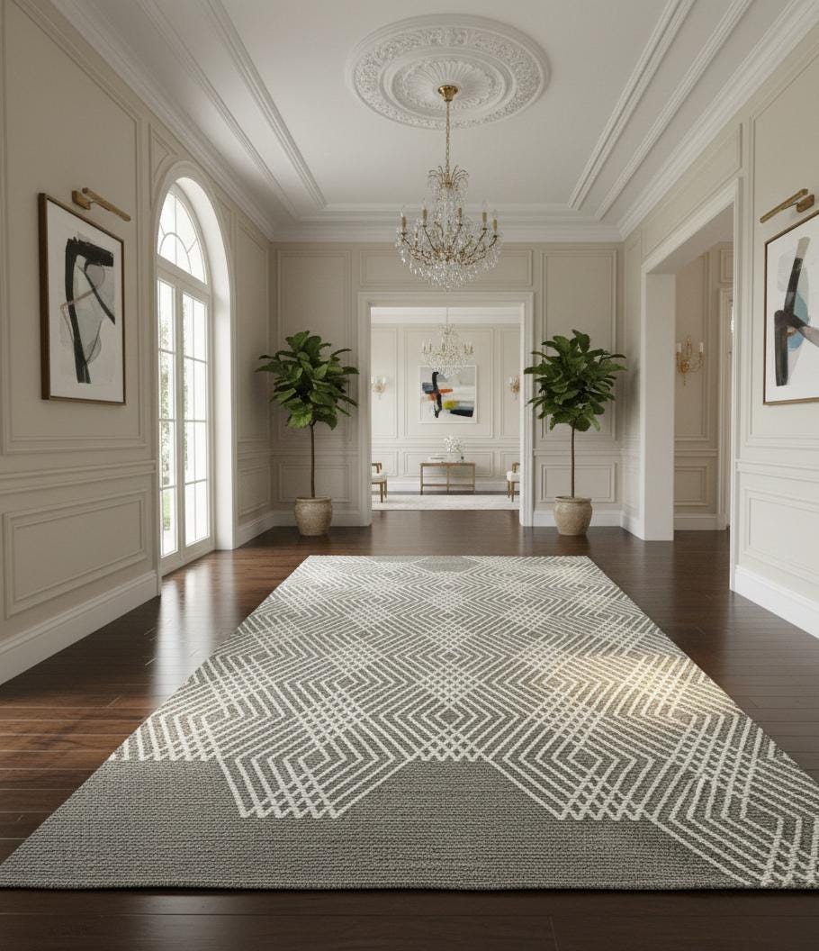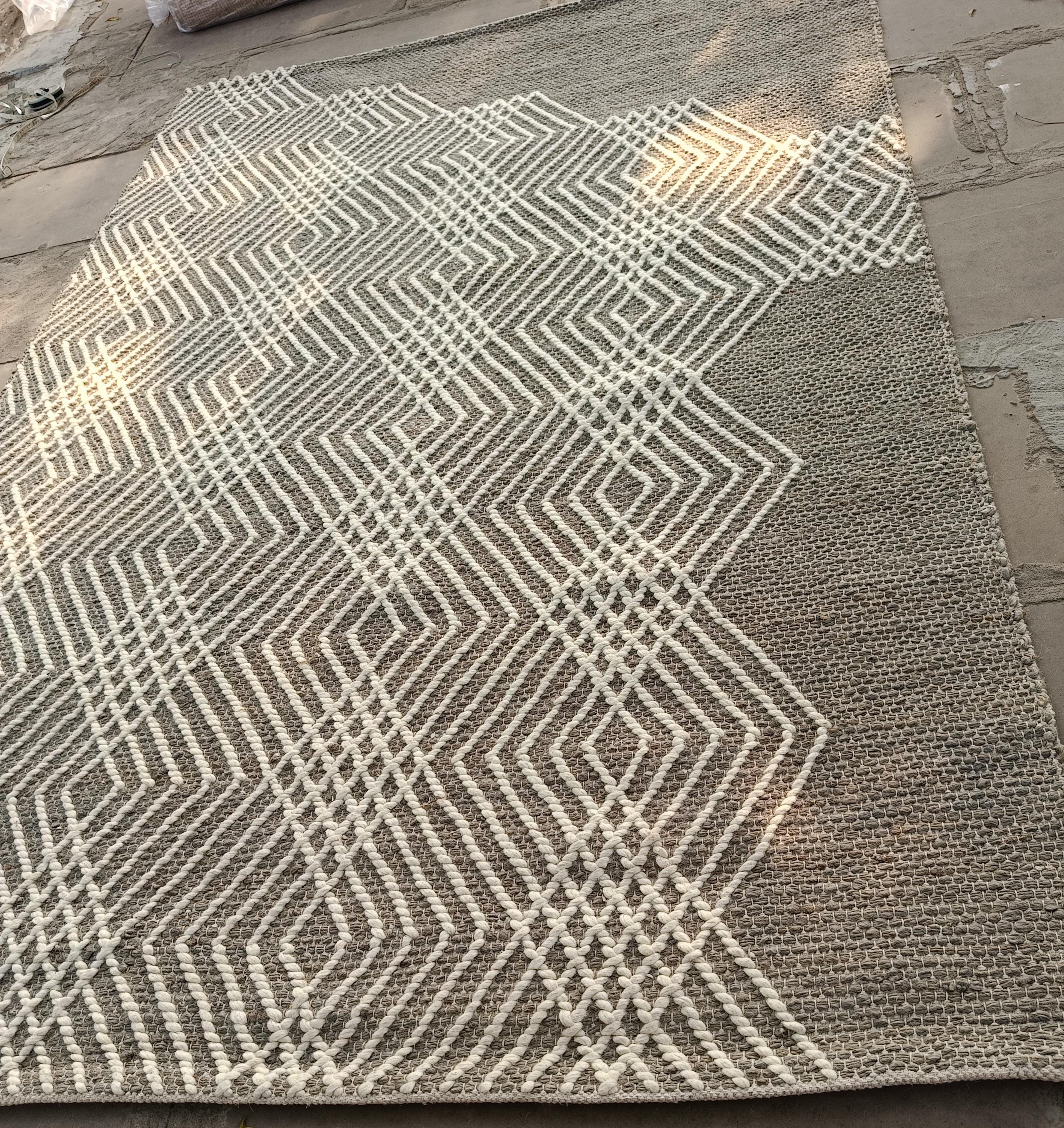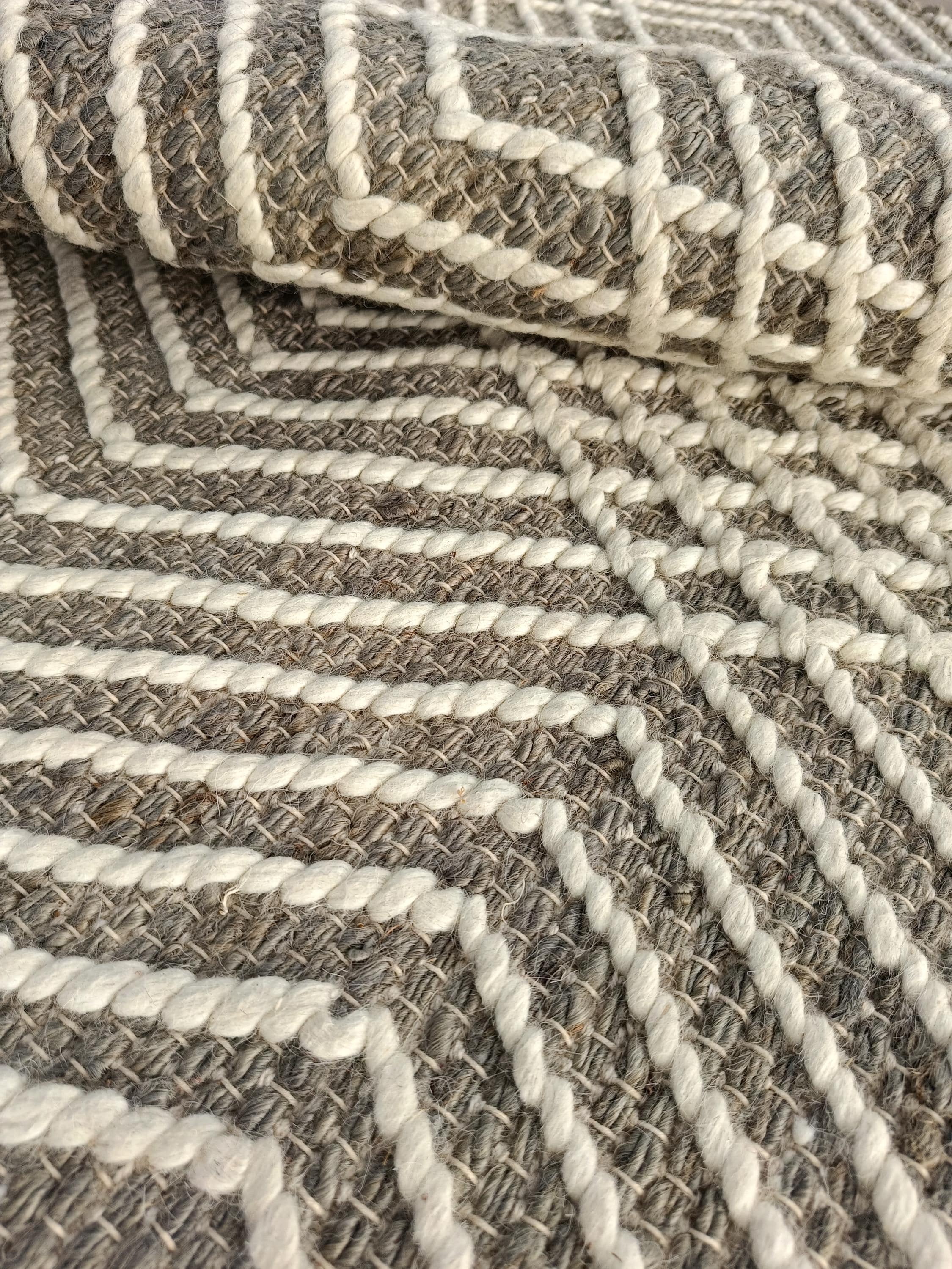 Bring effortless texture and timeless style into your home with this handwoven geometric jute rug. Featuring an elegant diamond pattern in soft ivory against a natural grey base, this rug blends modern design with artisanal craftsmanship.