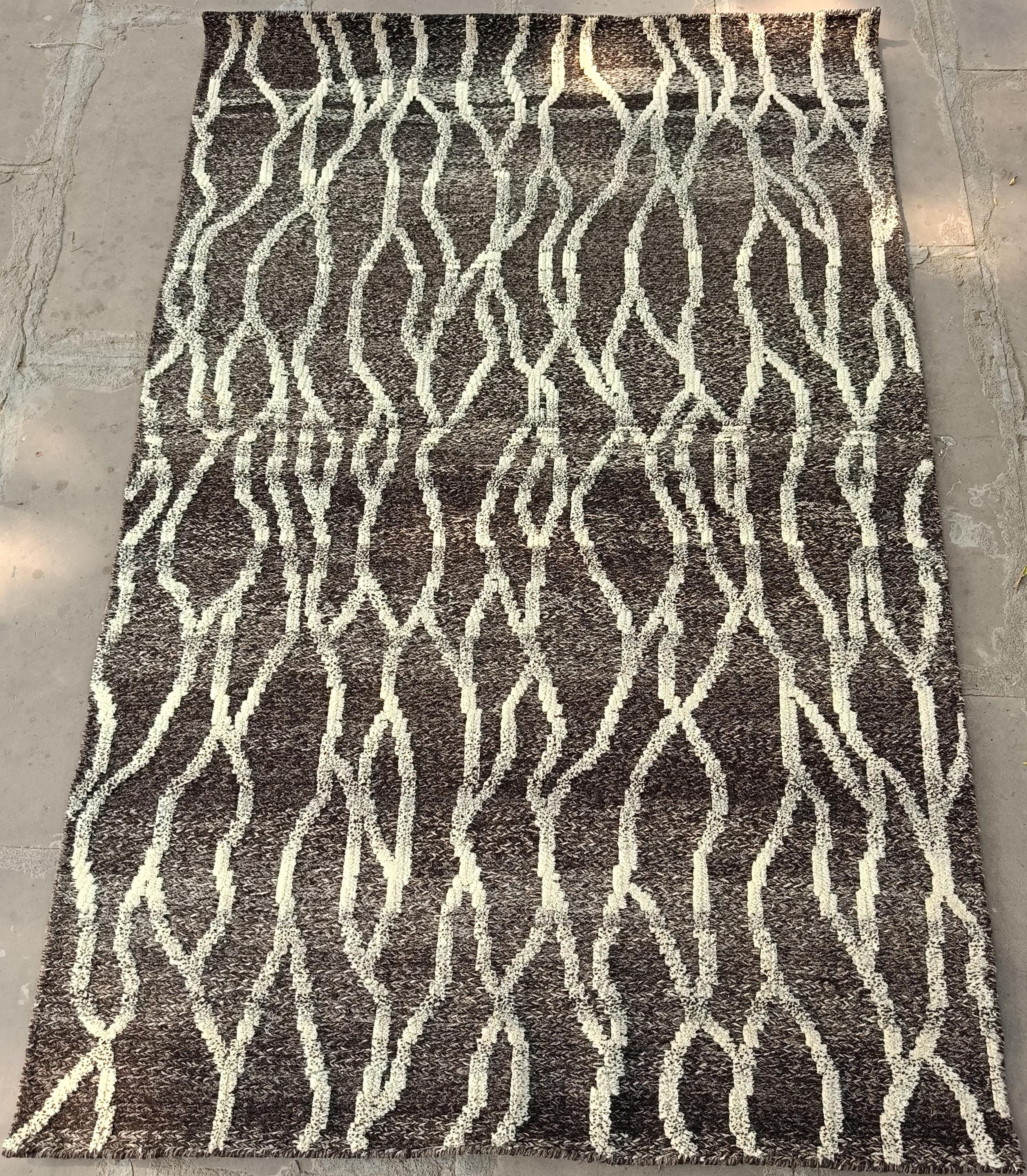 Expertly crafted by skilled artisans, this rug combines durability with a plush, textured surface that feels comfortable underfoot. Its dramatic contrast and modern boho aesthetic make it a perfect choice for living rooms, bedrooms, studios, or creative spaces looking for character and warmth.