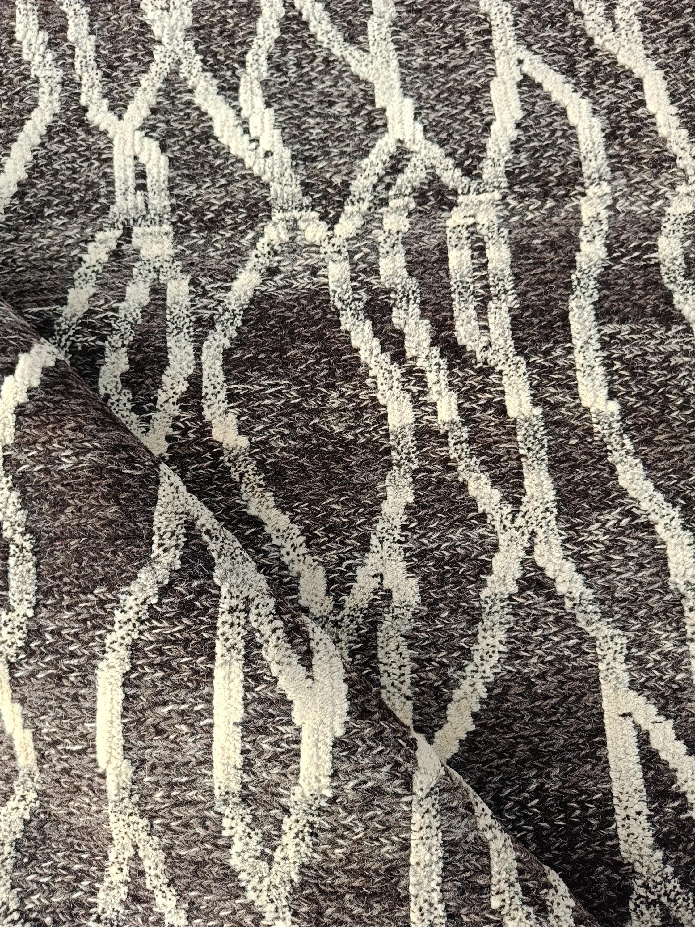 Make a bold yet elegant statement with this handwoven wool rug, featuring a flowing ivory wave pattern set against a rich dark brown background. The organic, abstract design adds movement and depth, creating a striking focal point while still maintaining.