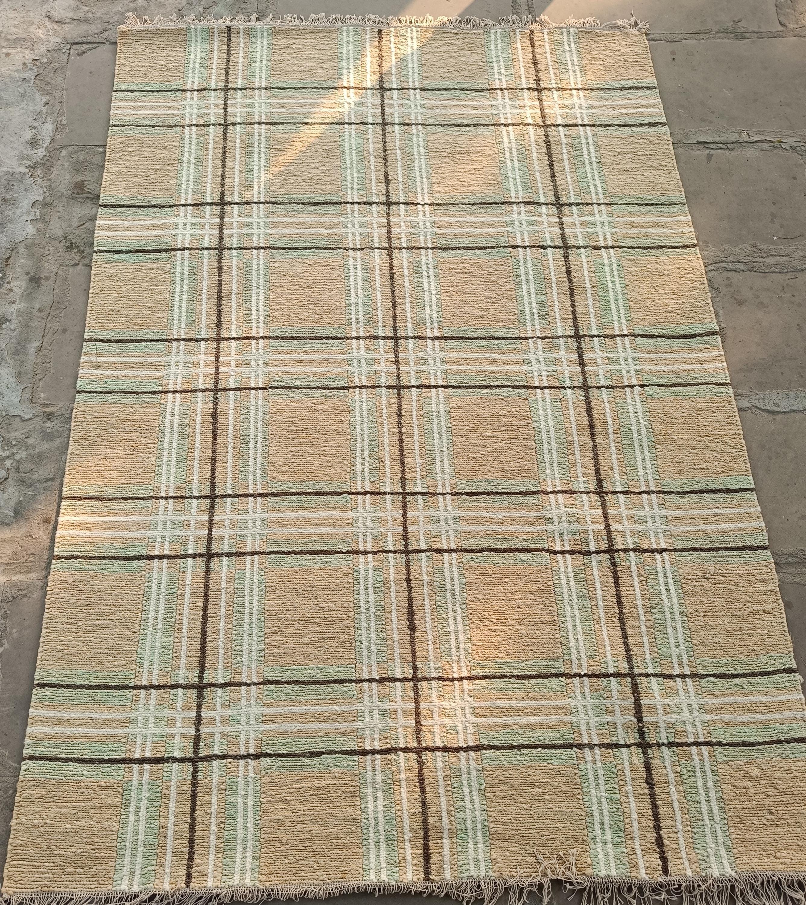 Add a timeless, cozy feel to your home with this handwoven plaid jute rug, featuring a classic checkered pattern accented with soft green and brown stripes. Woven using natural fibers, this rug brings , texture, and an organic charm that works beautifully in farmhouse, rustic, boho, and minimalist interiors.