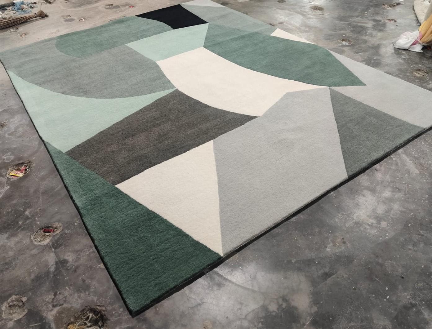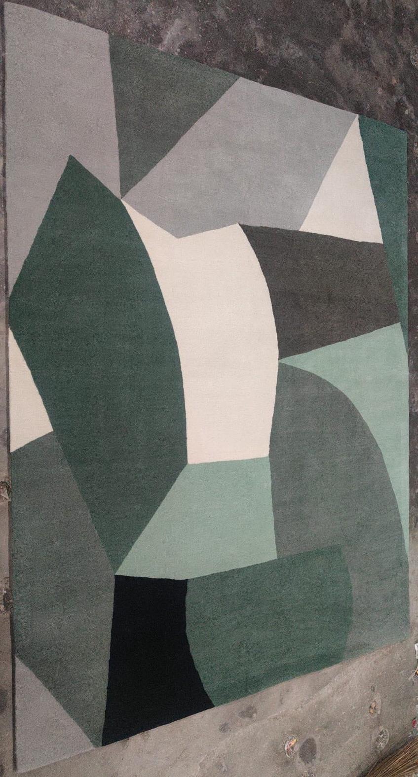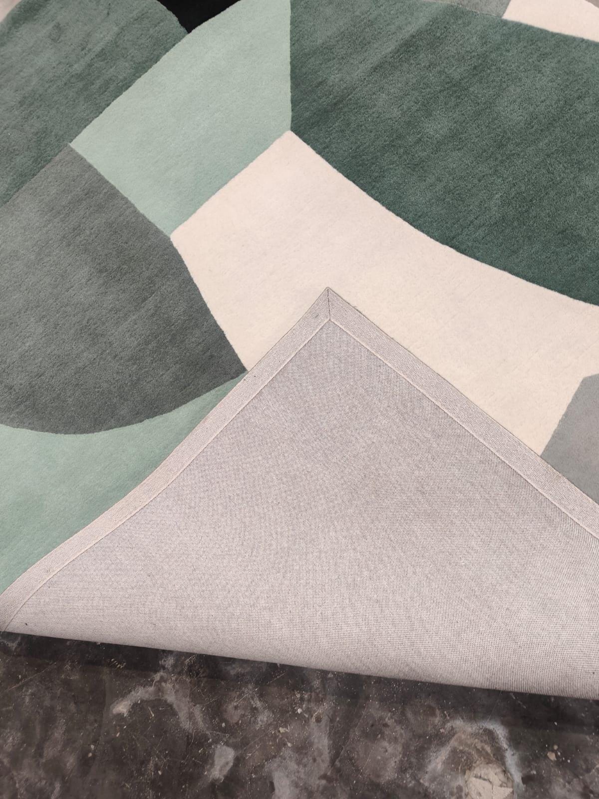 Hand Tufted New Zealand Wool Rug, Modern Geometric Area Rug, Green Abstract Carpet, Contemporary Living Room Rug, Custom Size Floor Rug