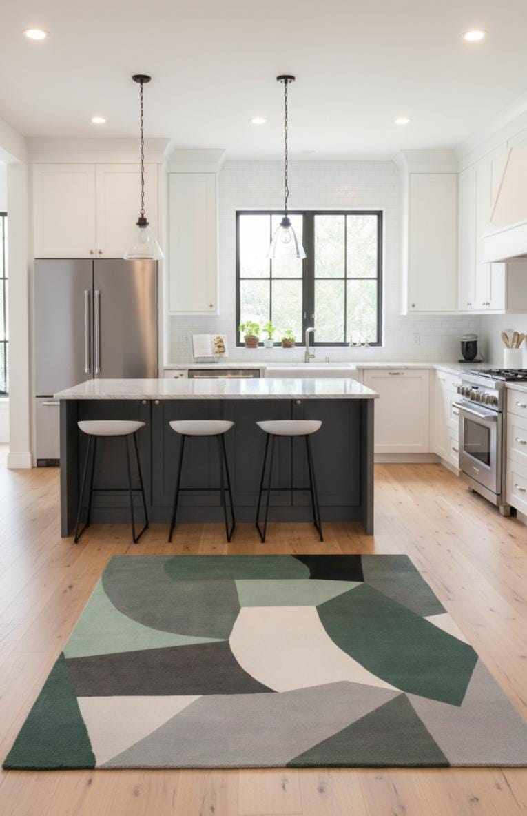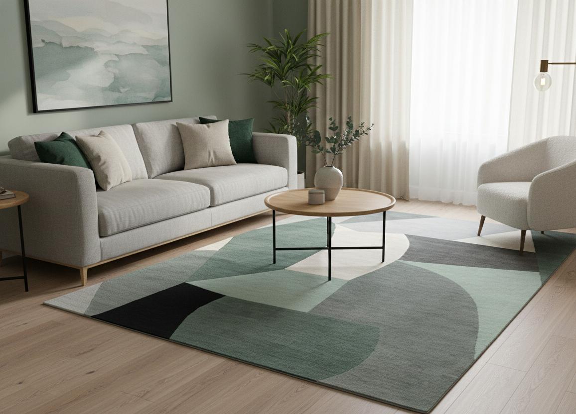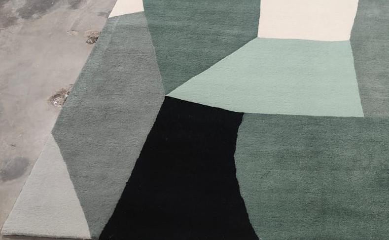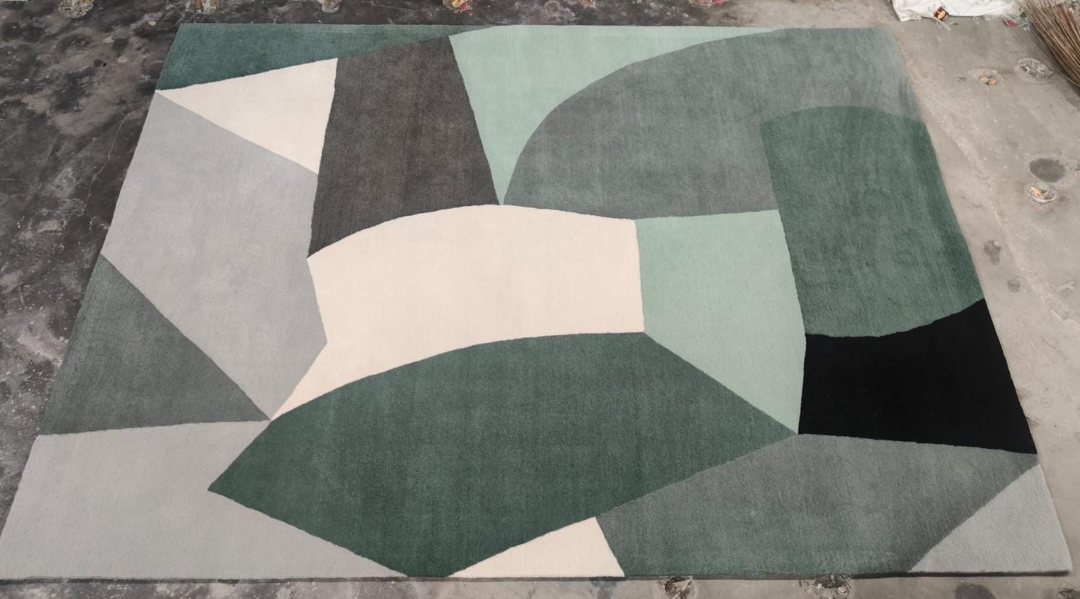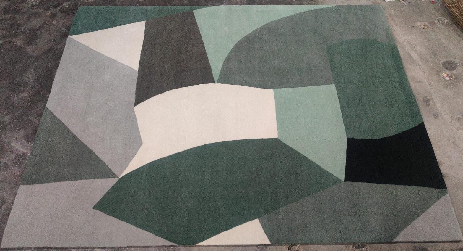 Hand Tufted New Zealand Wool Rug, Modern Geometric Area Rug, Green Abstract Carpet, Contemporary Living Room Rug, Custom Size Floor Rug
