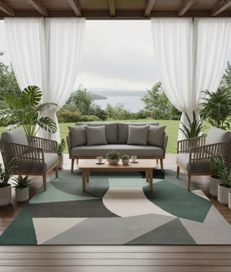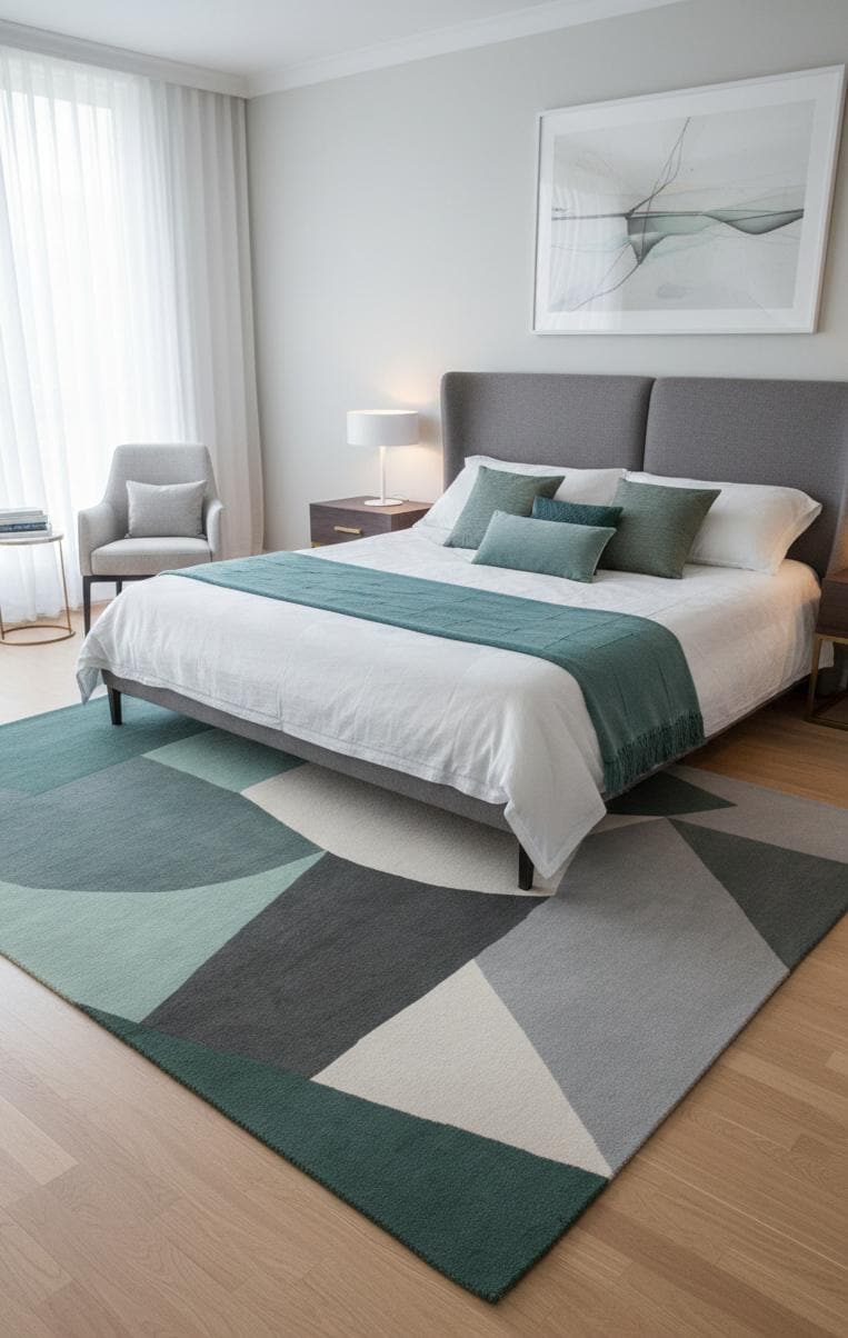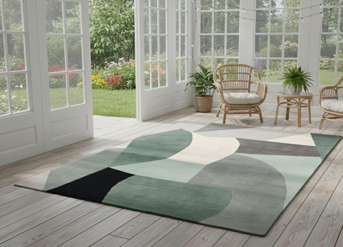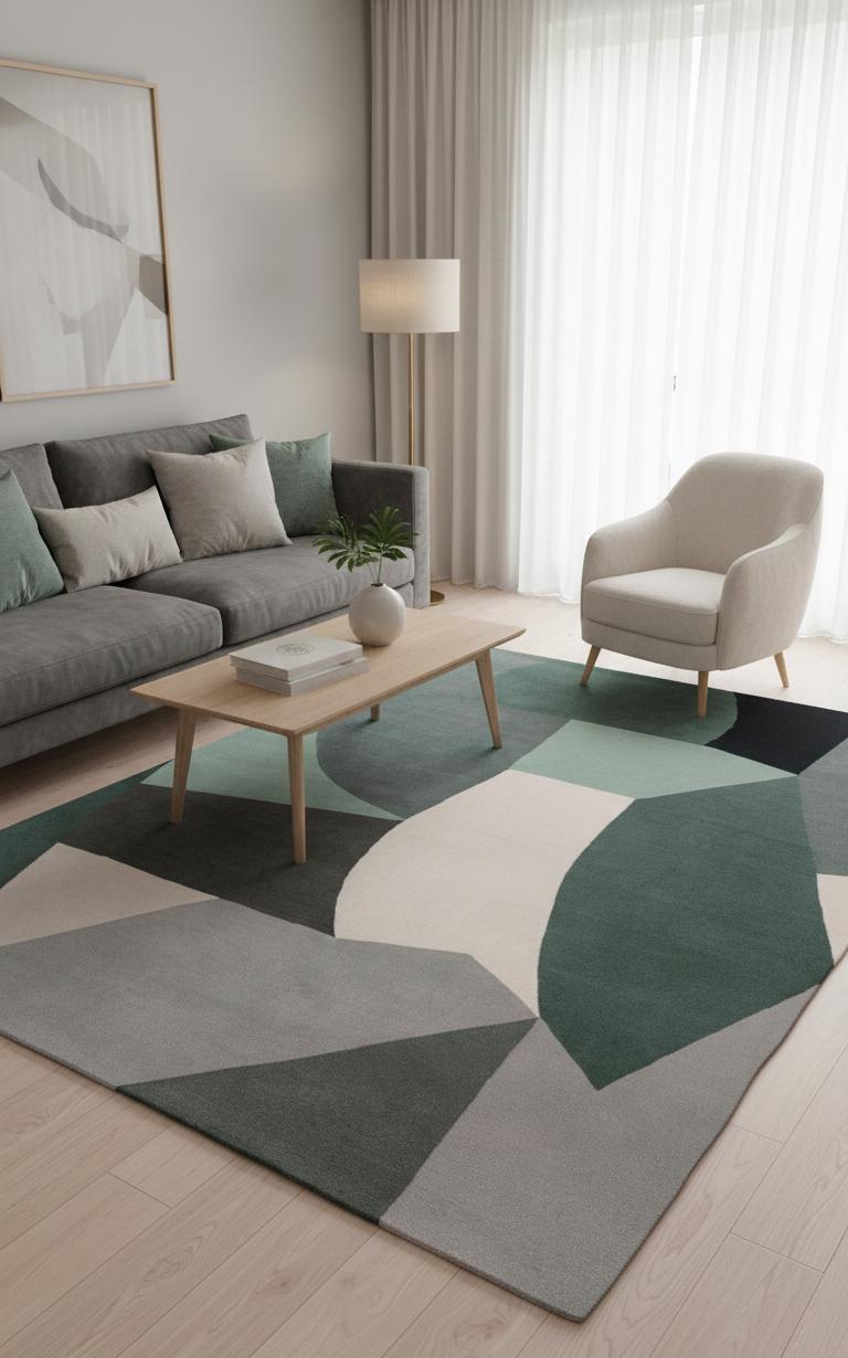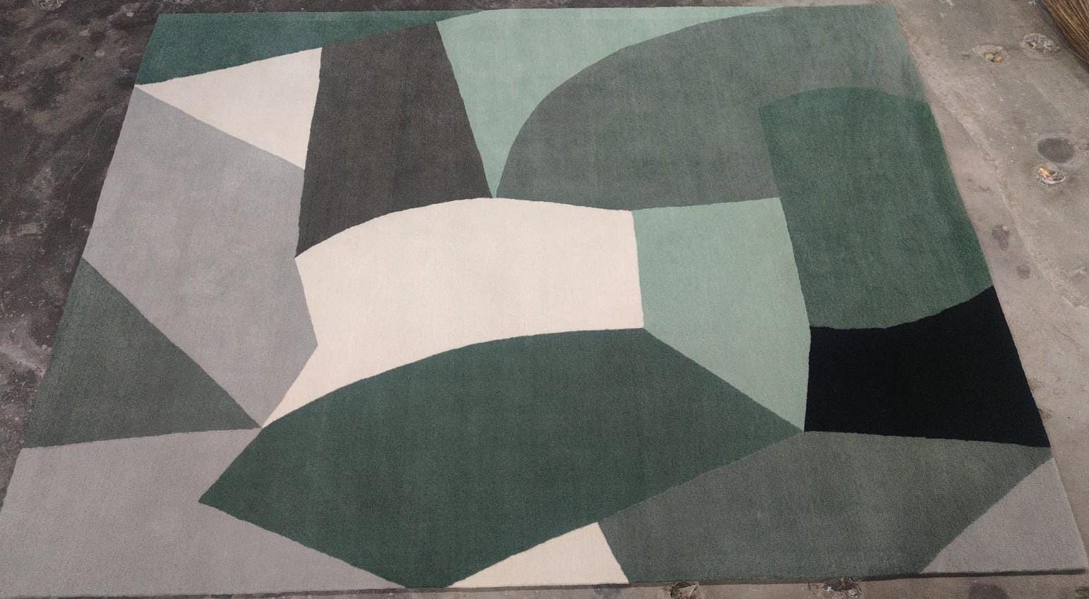Elevate your interior with this beautifully crafted Hand Tufted New Zealand Wool Rug, designed to bring a modern and sophisticated touch to any space. Featuring a bold geometric abstract pattern in calming shades of green, ivory, grey, and deep forest tones, this rug creates a perfect balance between contemporary style and timeless elegance.